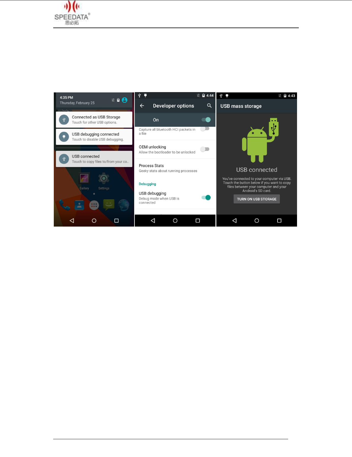 on USB storage and android robot will turn into orange after connecting