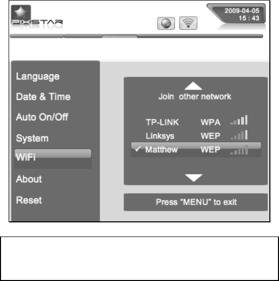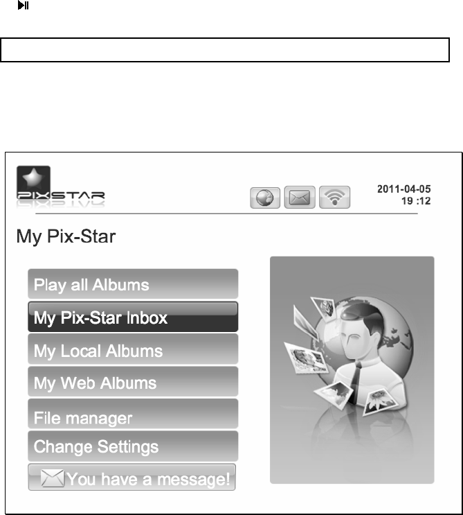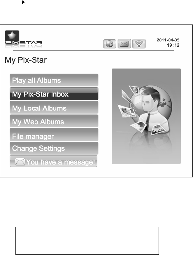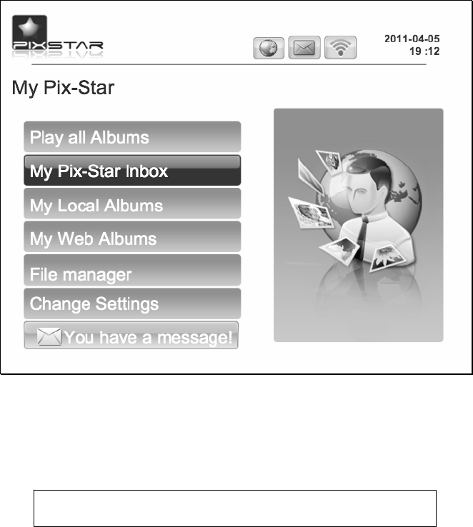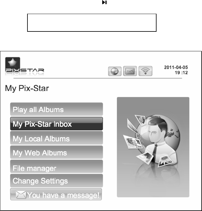 After you power on the device and wait for approximately 30 seconds your Pix-Star will display the