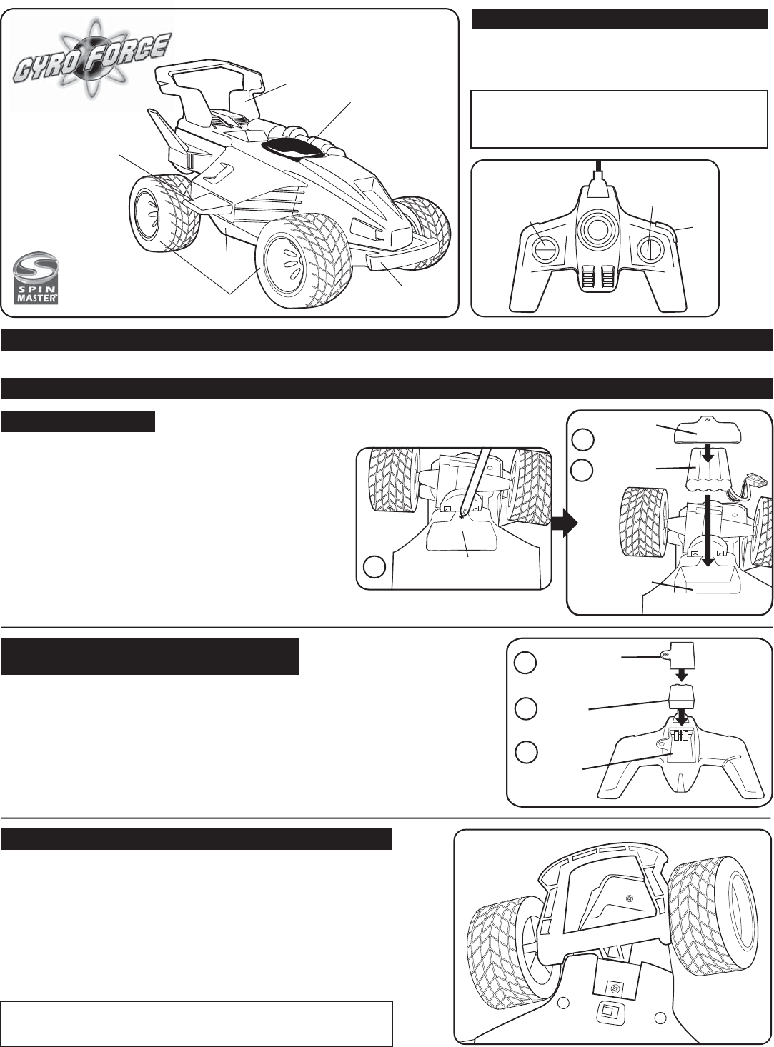 TRICK TIPS: Gyro Force™ can perform amazing stunts on the ground or in the air. The controller works much like a