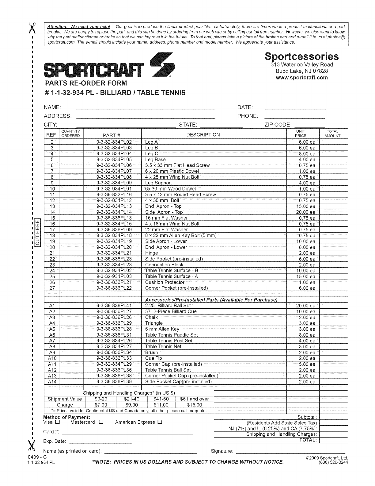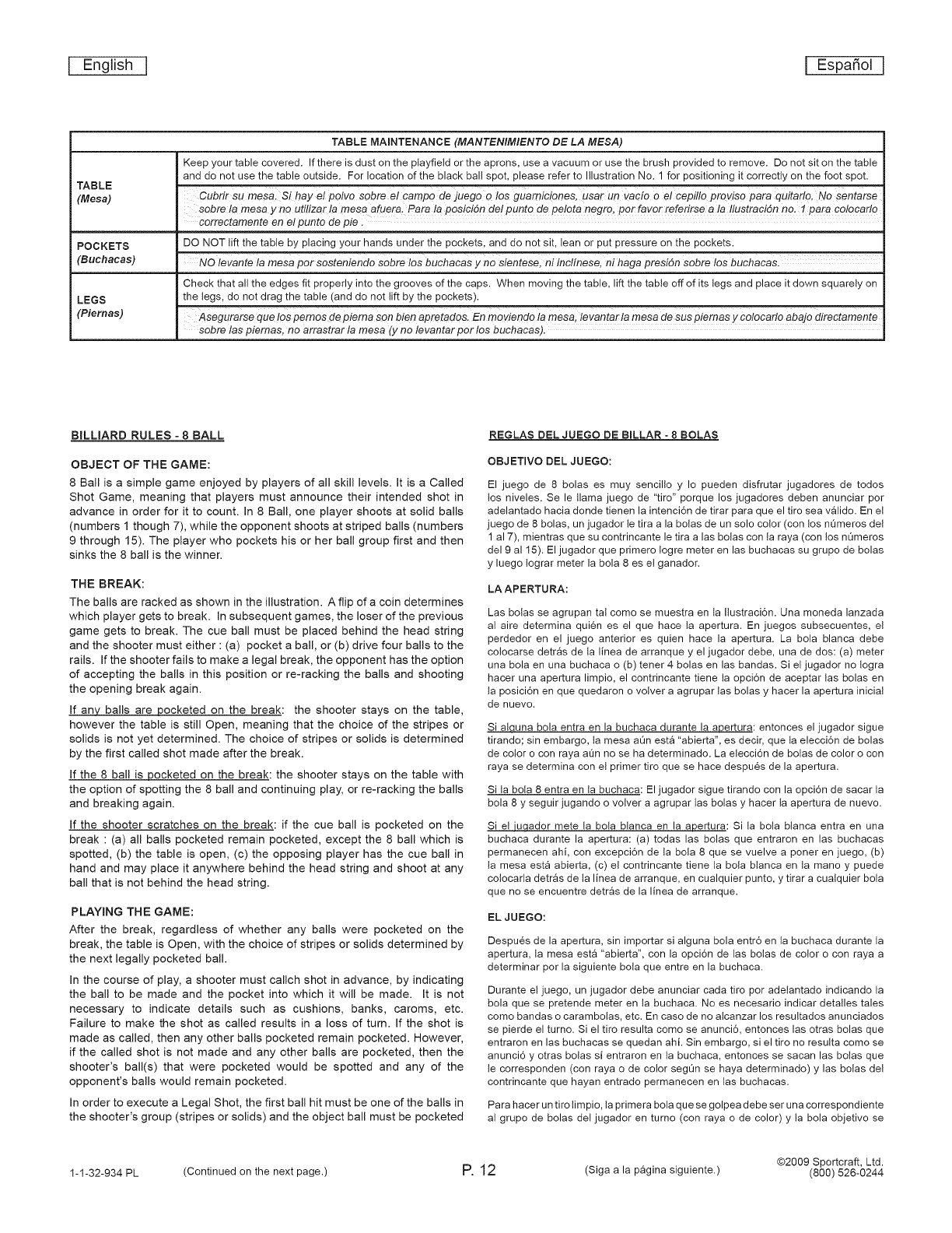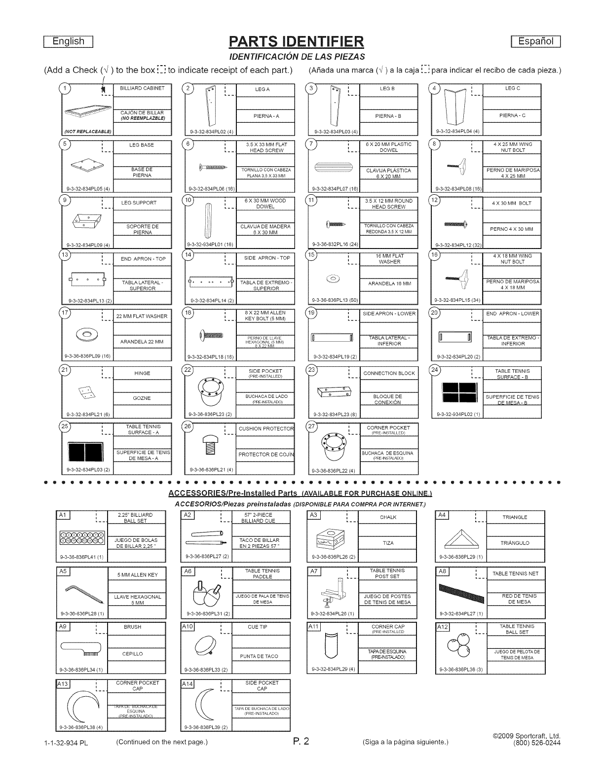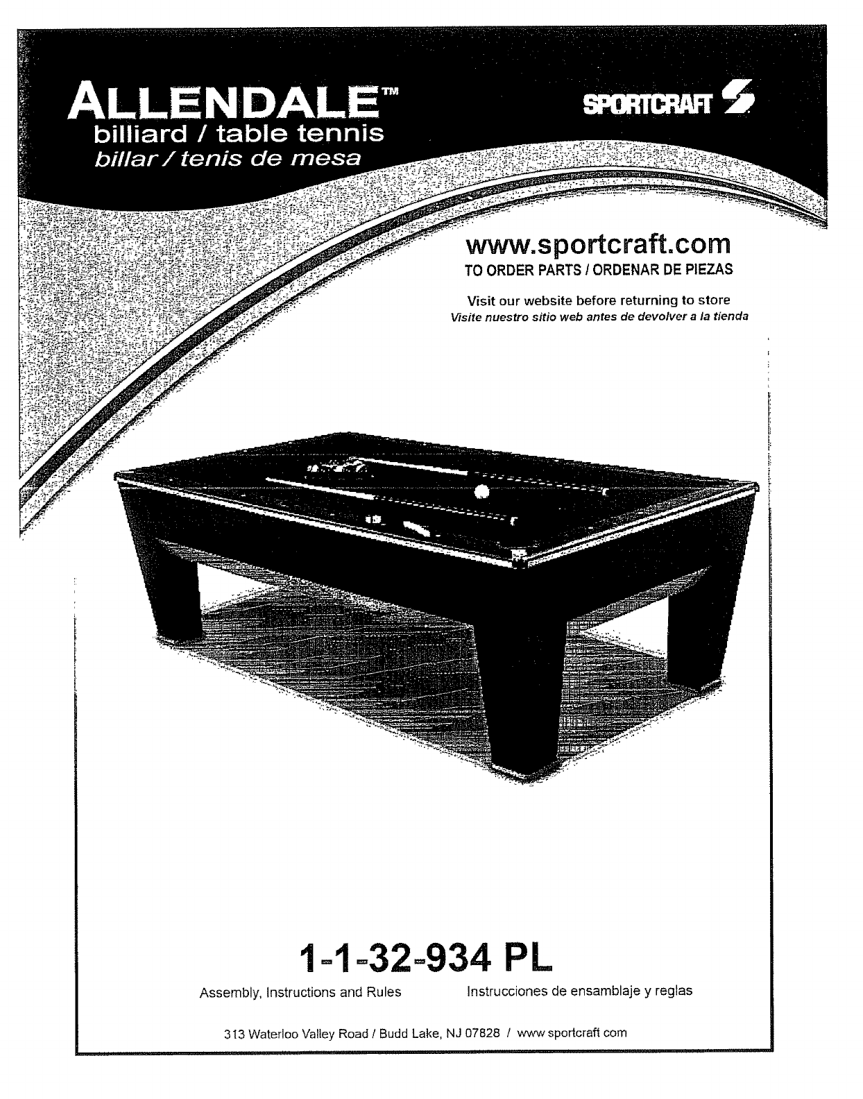 Sportcraft 1 32 934PL User Manual POOL TABLE/TABLE TENNIS Manuals And Guides L1002082