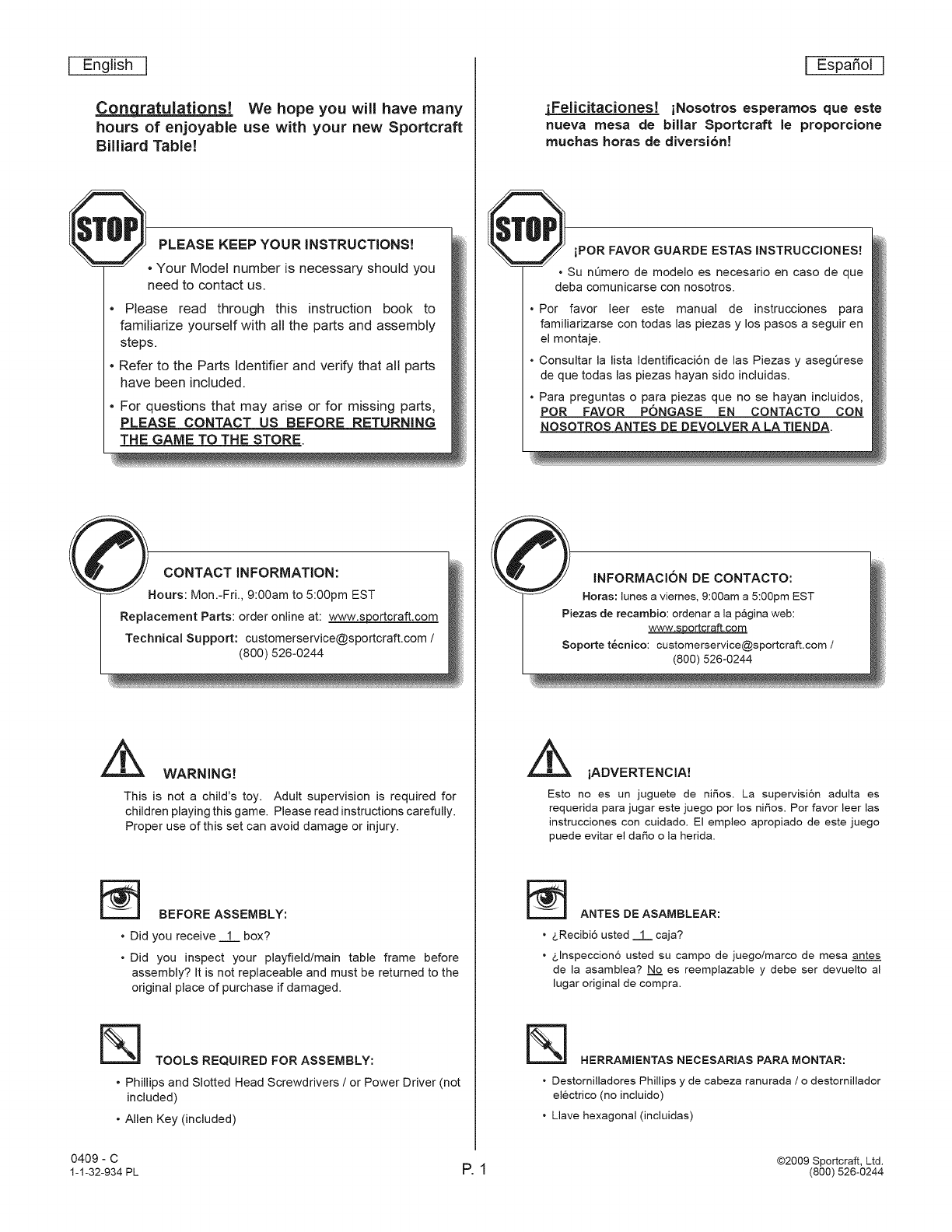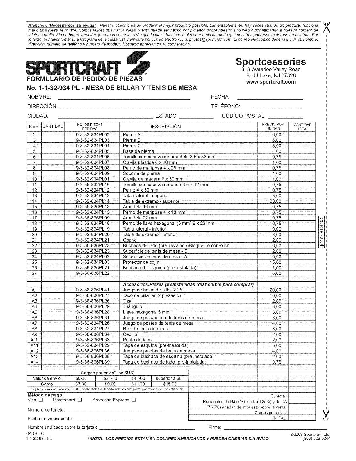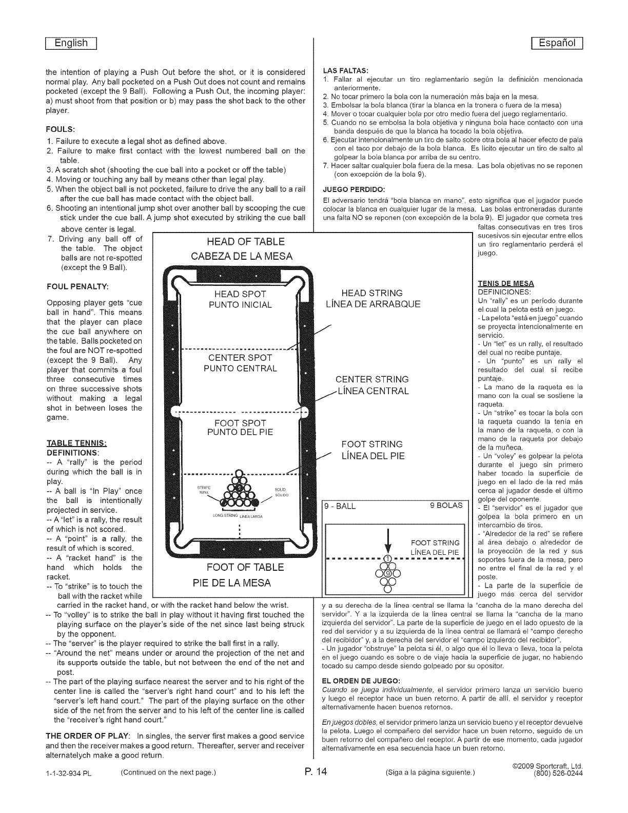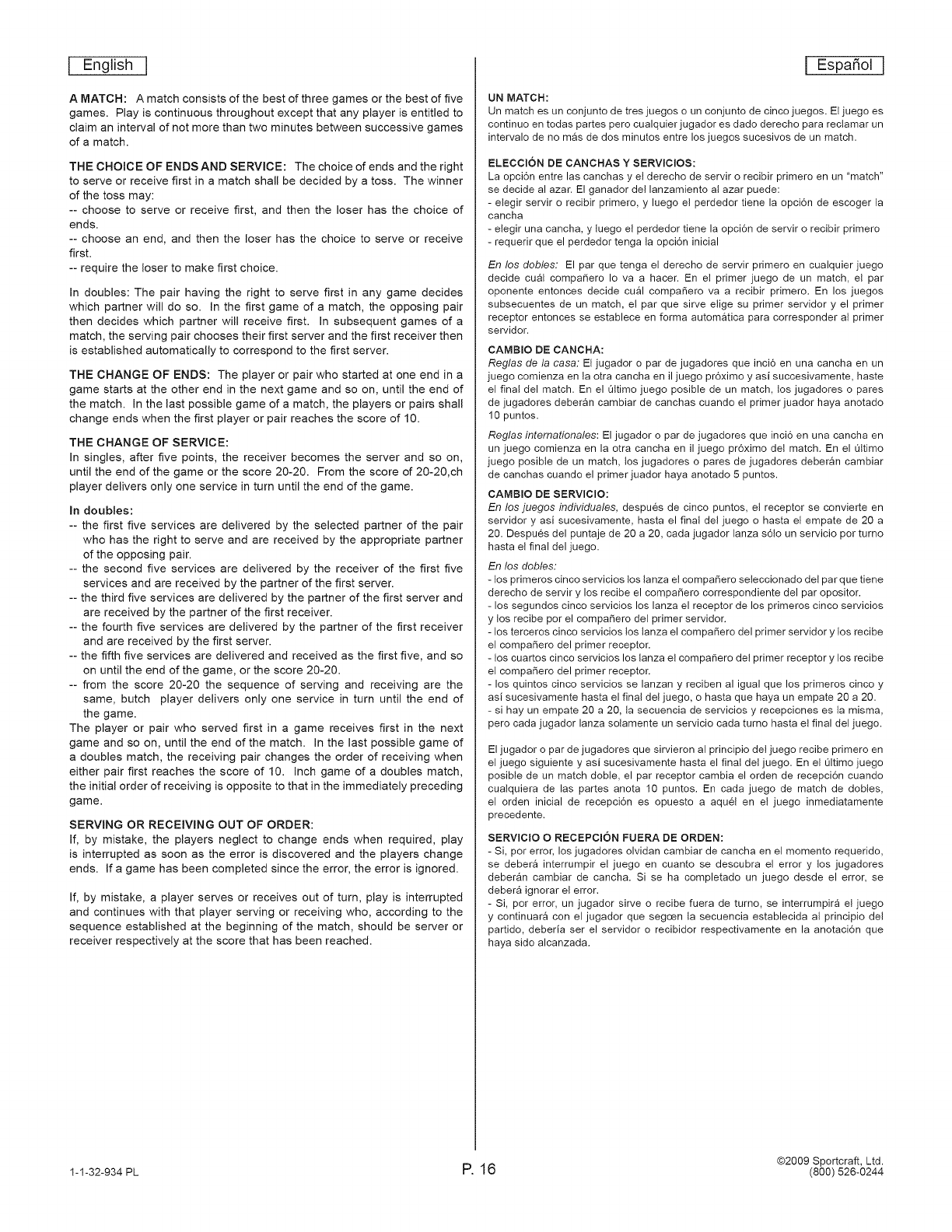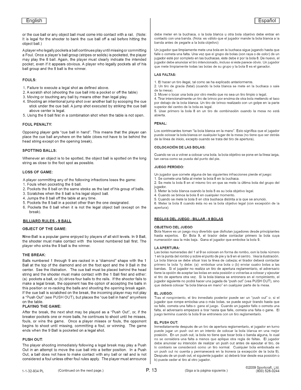 Sportcraft 1 32 934PL User Manual POOL TABLE/TABLE TENNIS Manuals And Guides L1002082