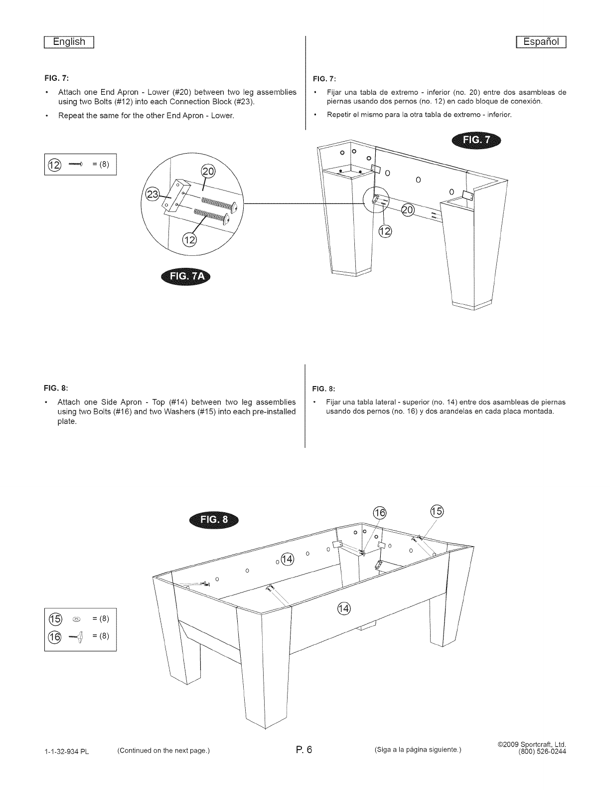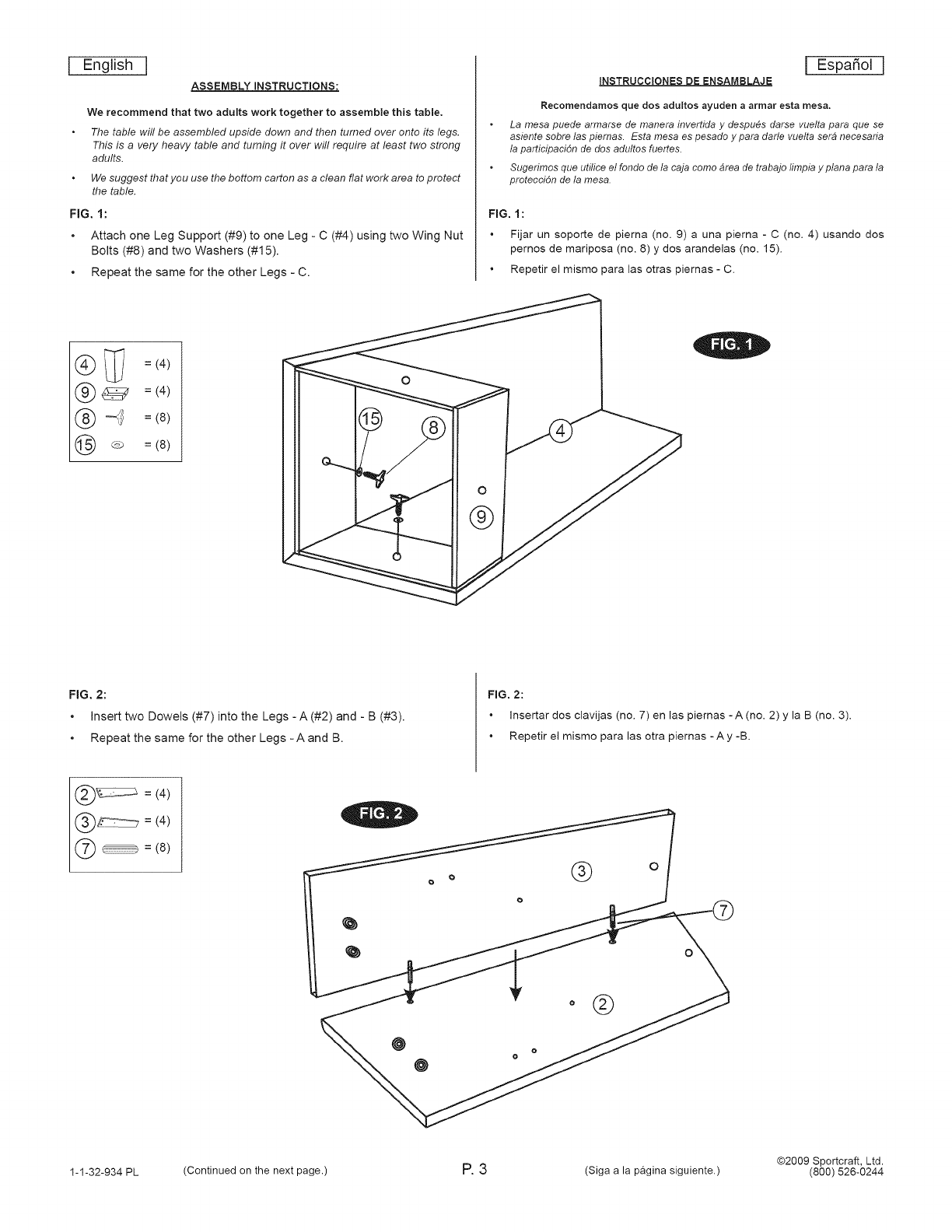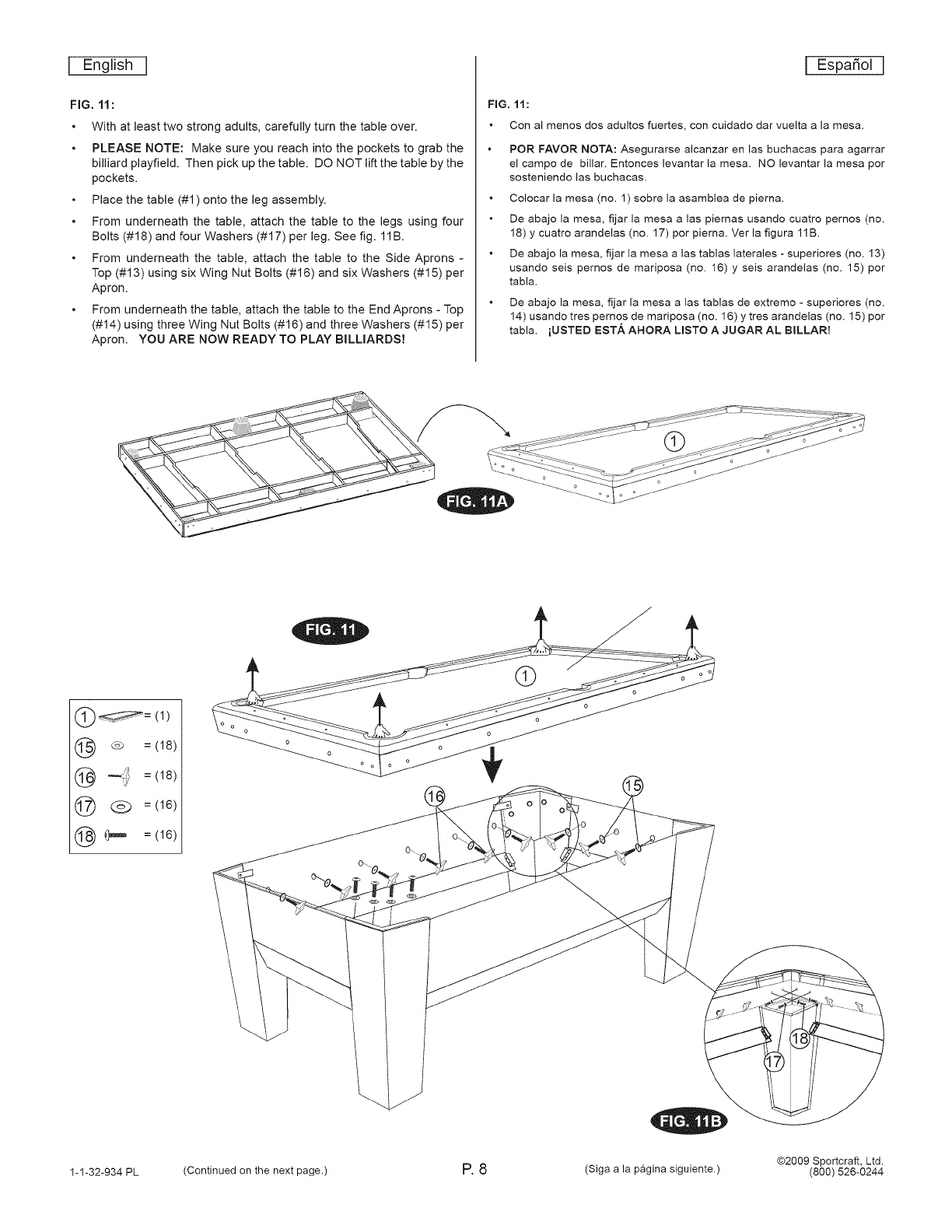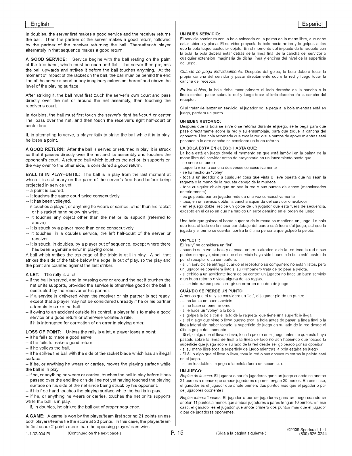 Sportcraft 1 32 934PL User Manual POOL TABLE/TABLE TENNIS Manuals And Guides L1002082