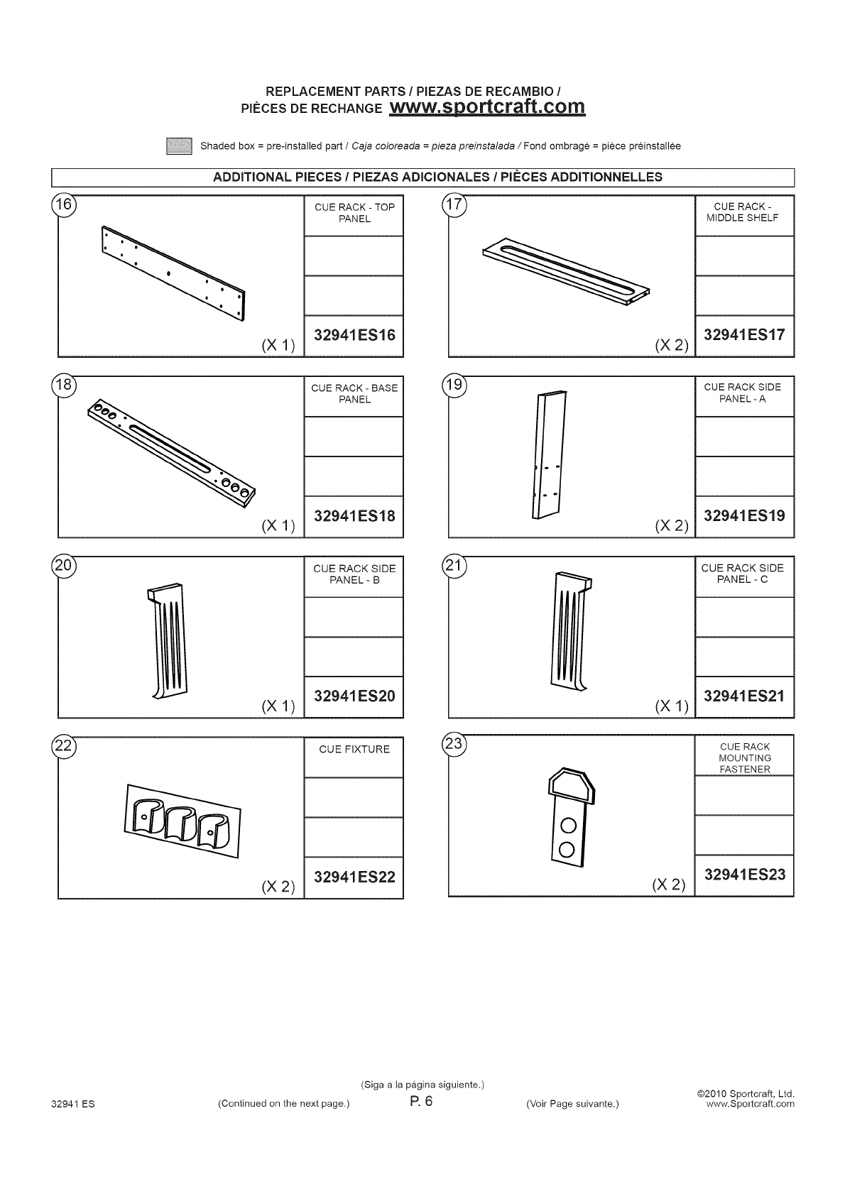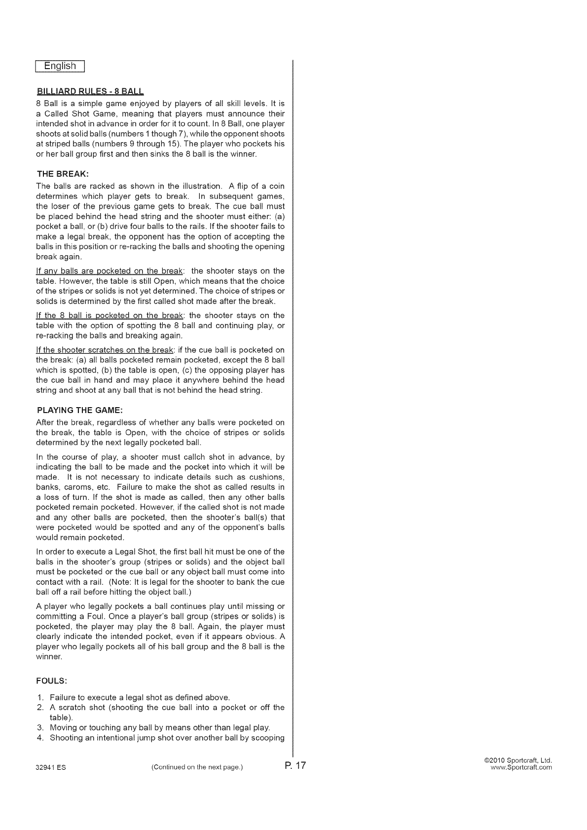 32941 ES (Continued on the next page.) P. 17 www, Sportcraft.com