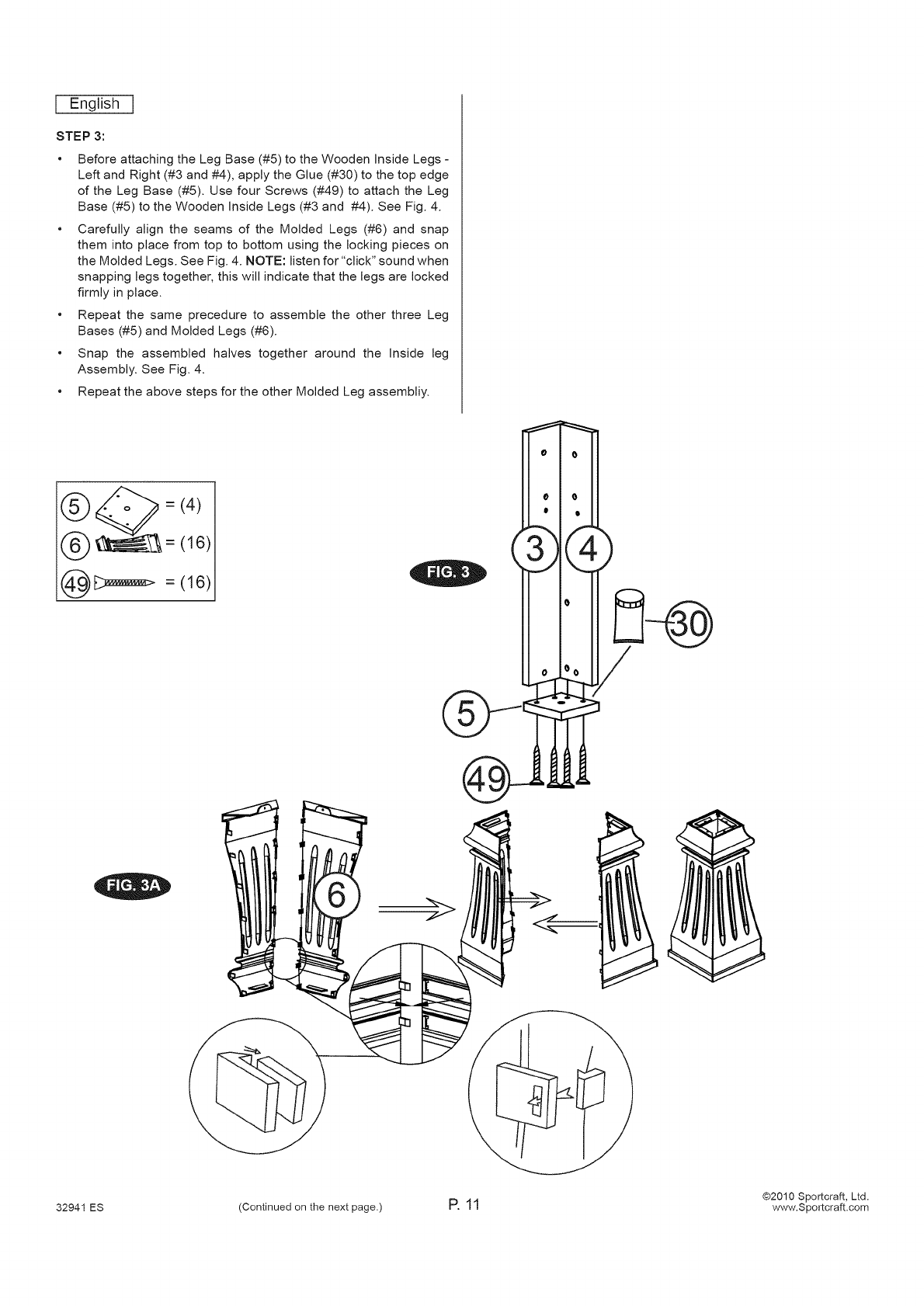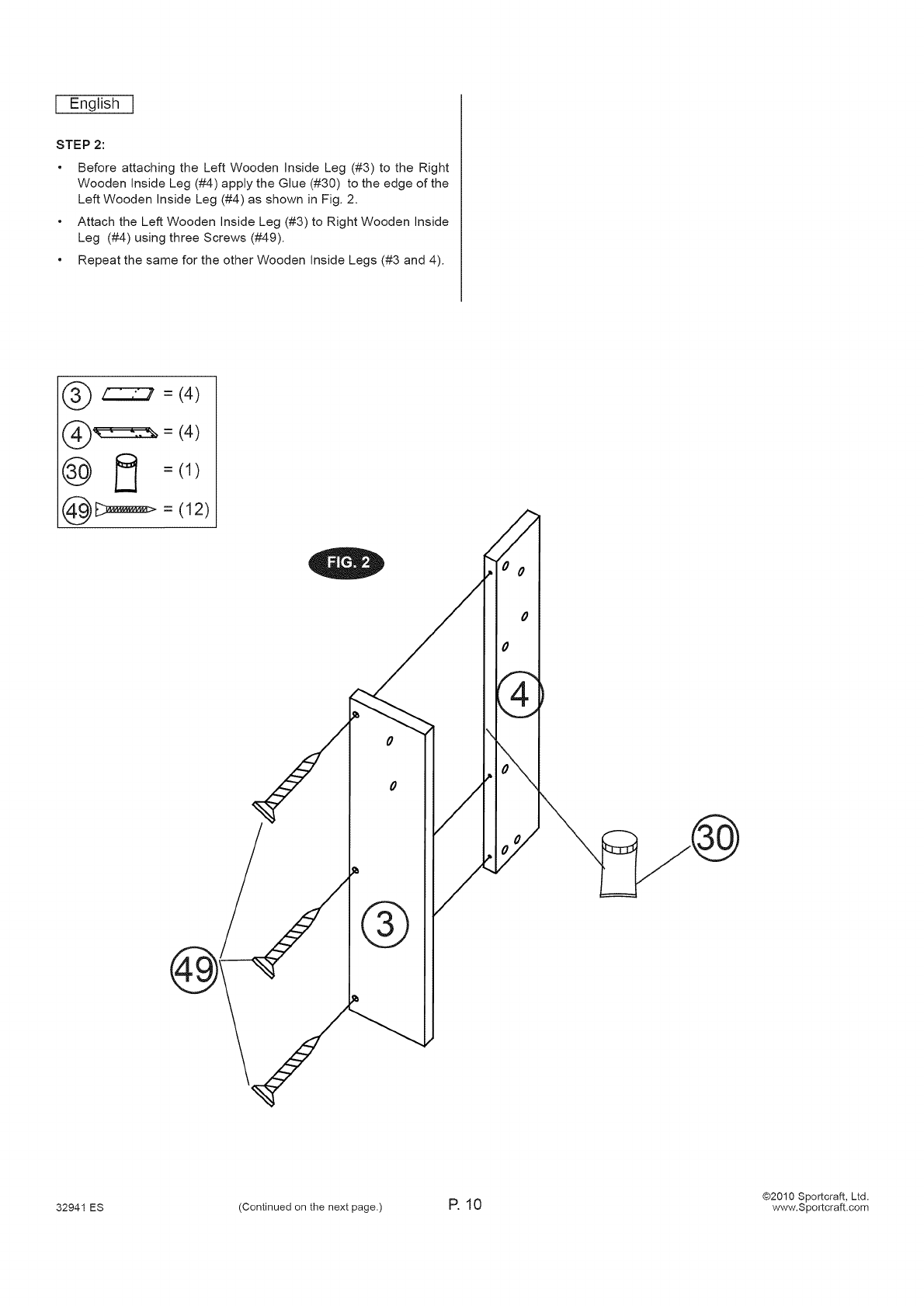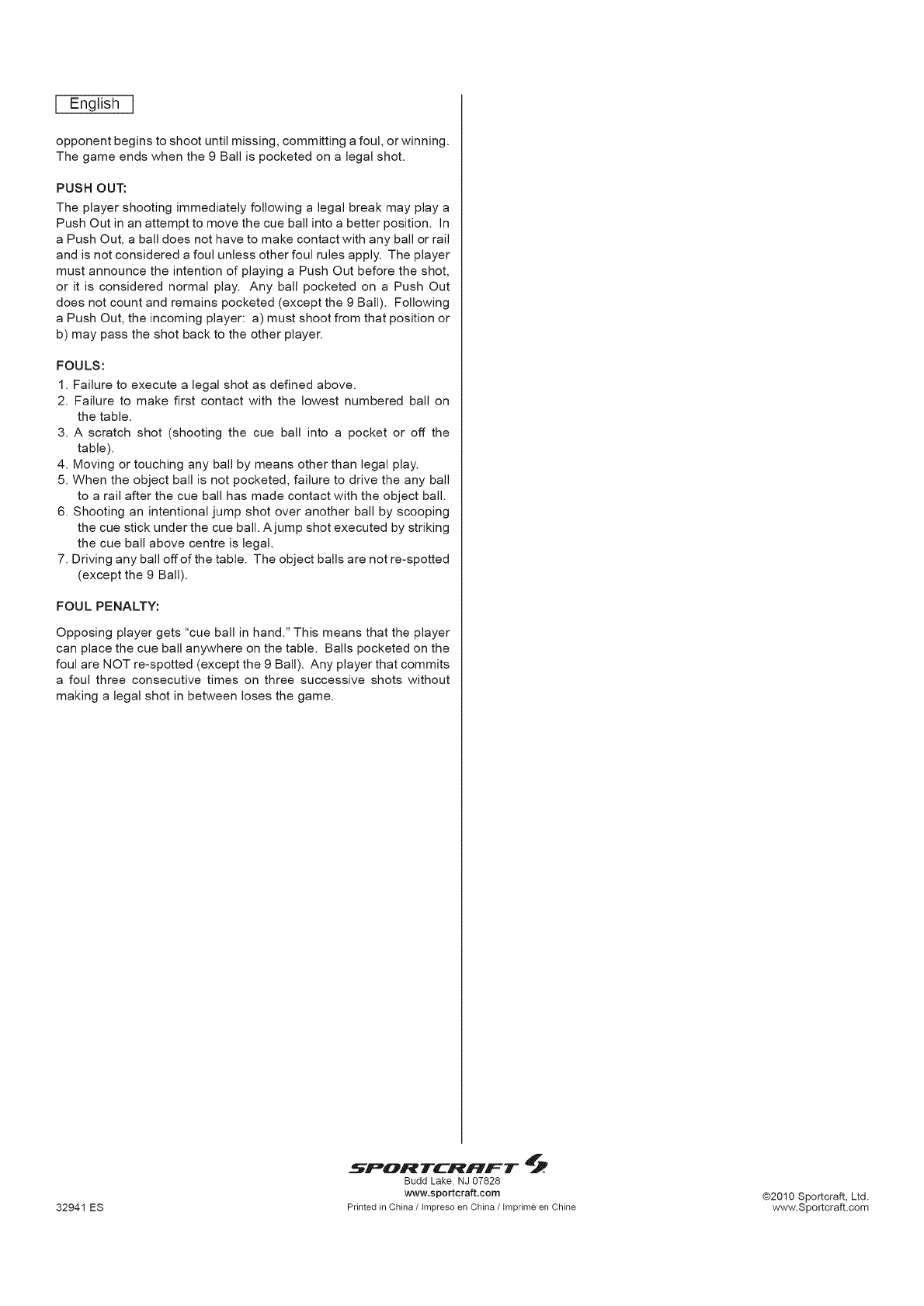 32941 ES (Continued on the next page.) P. 1 8 www.Sportcraft.com