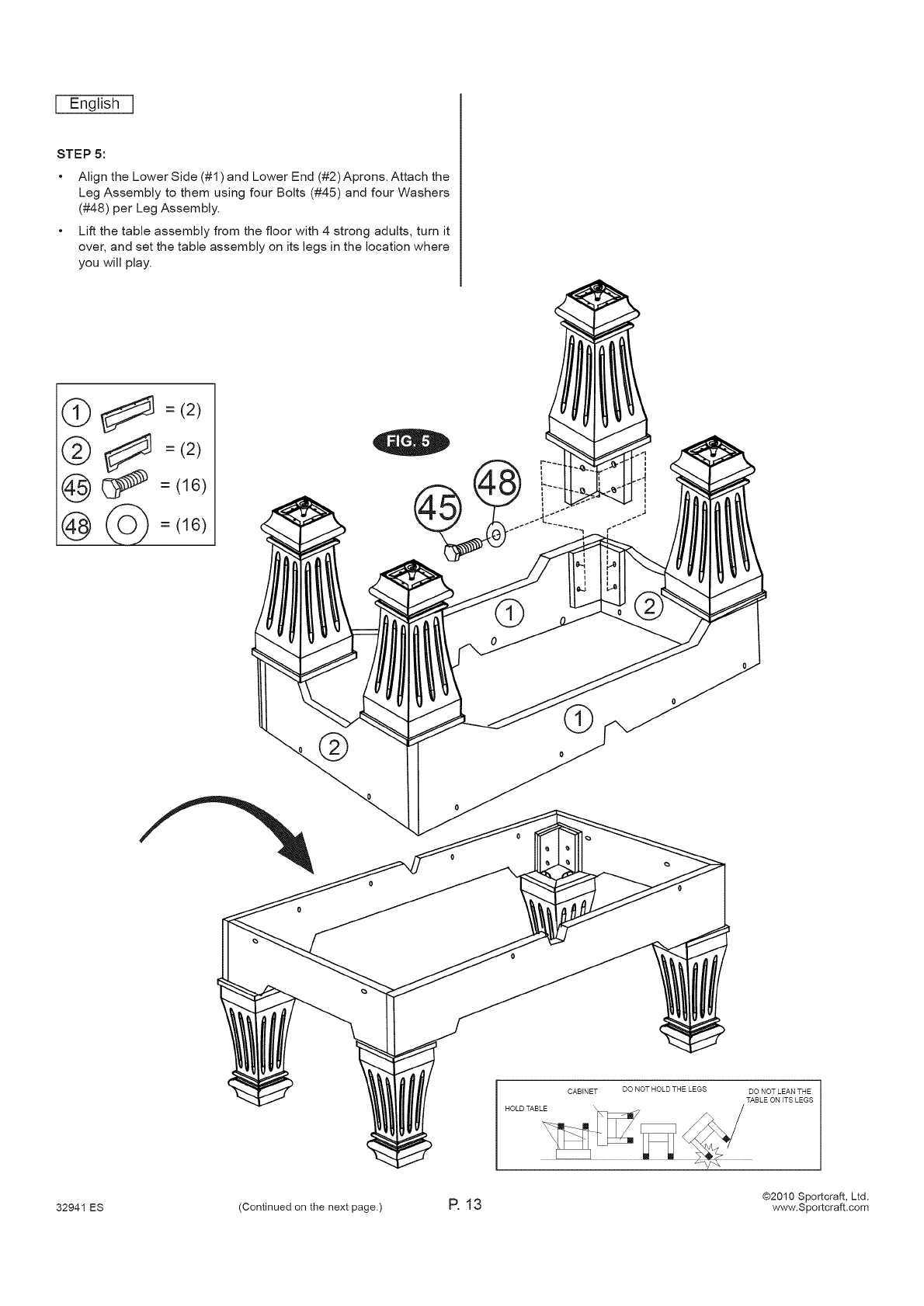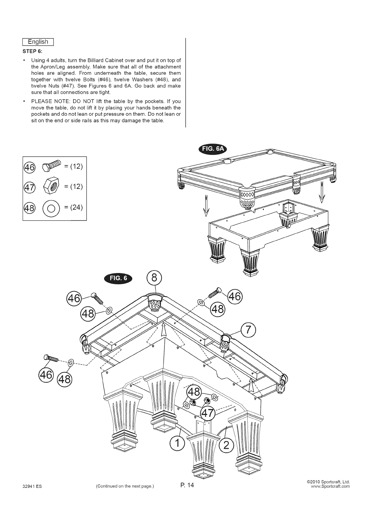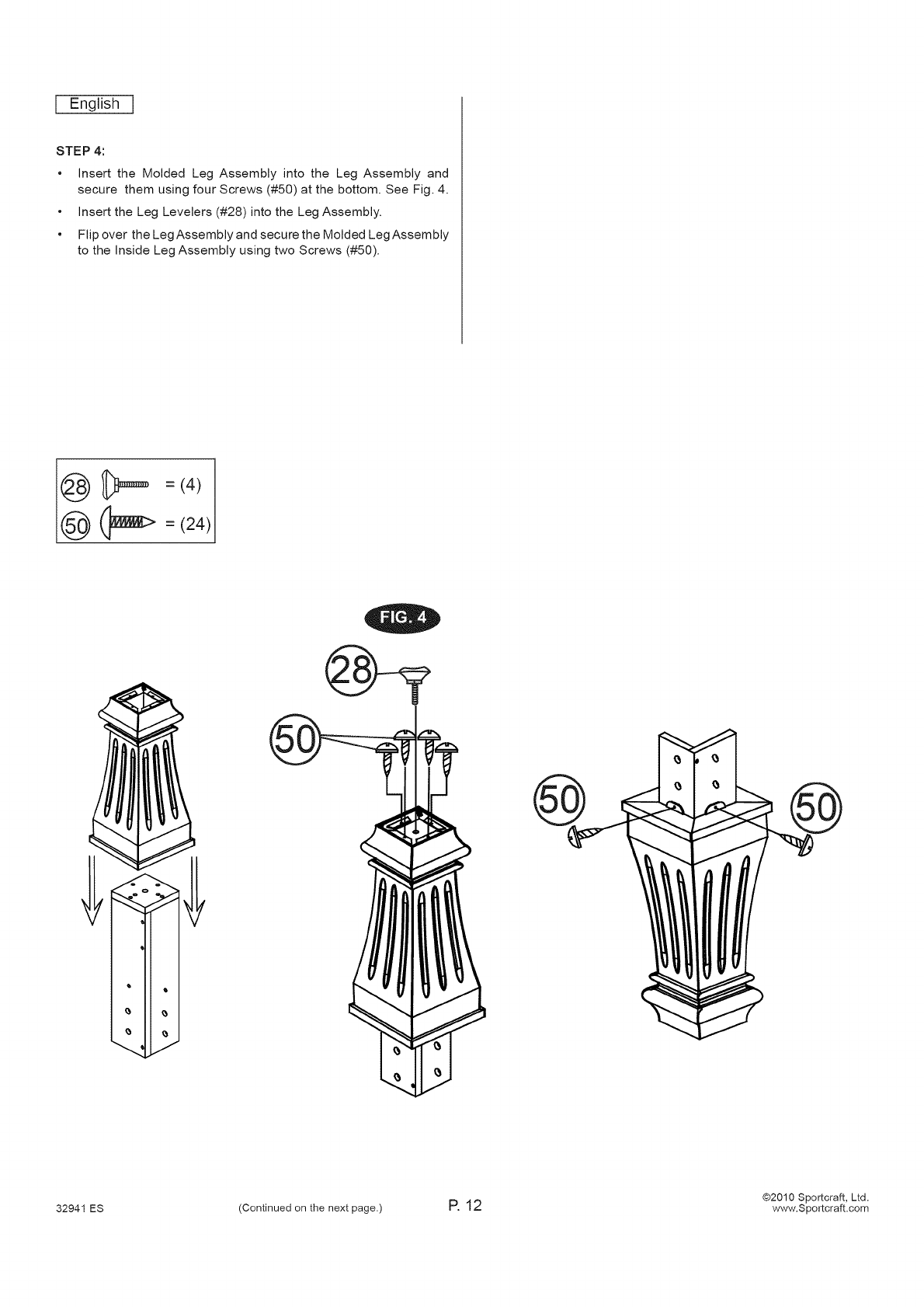 32941 ES (Continued on the next page.) P. 1 8 www.Sportcraft.com