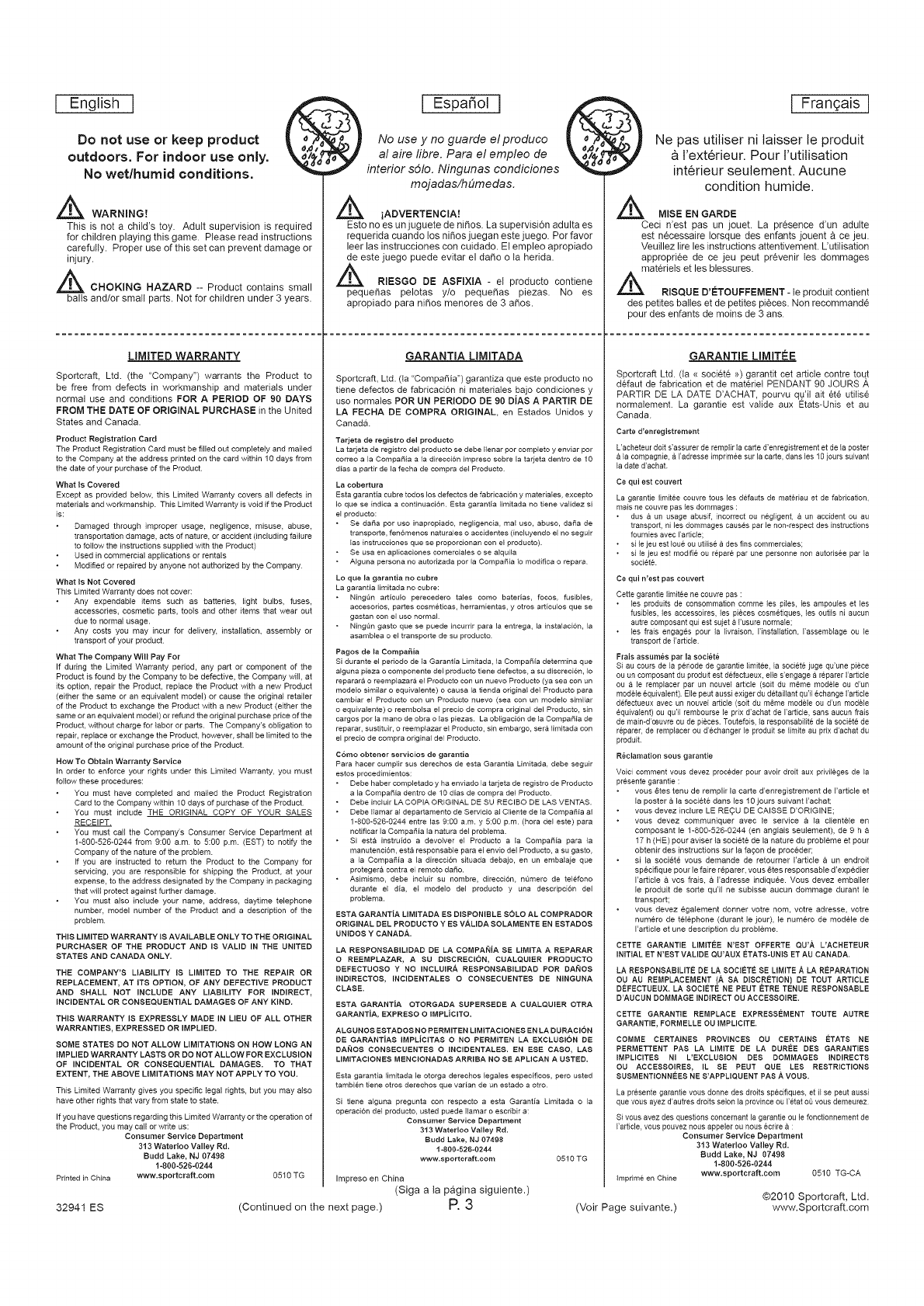Printed in China /lmpreso en China /lmprime en Chine @2010 Sportcraft, Ltd.