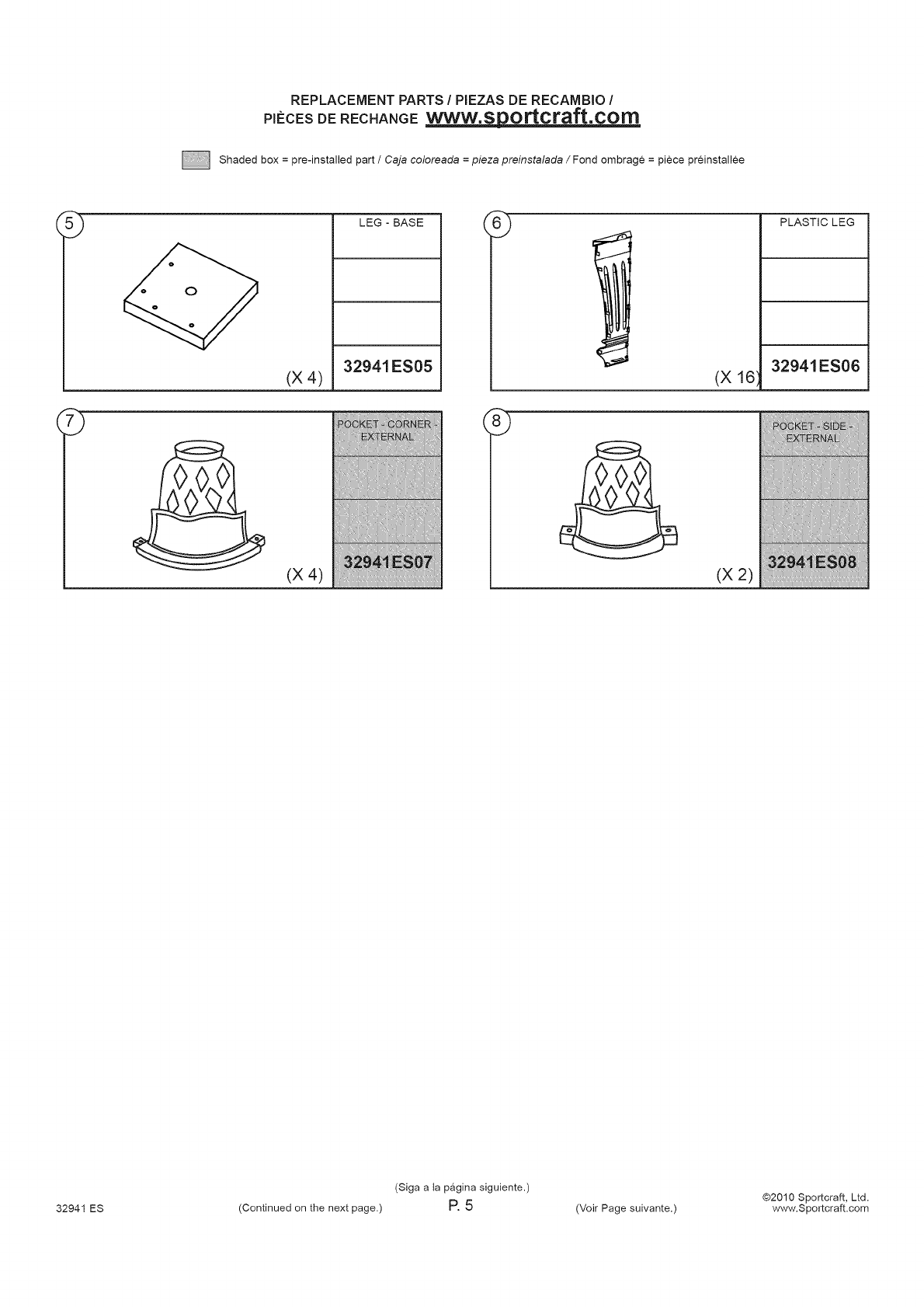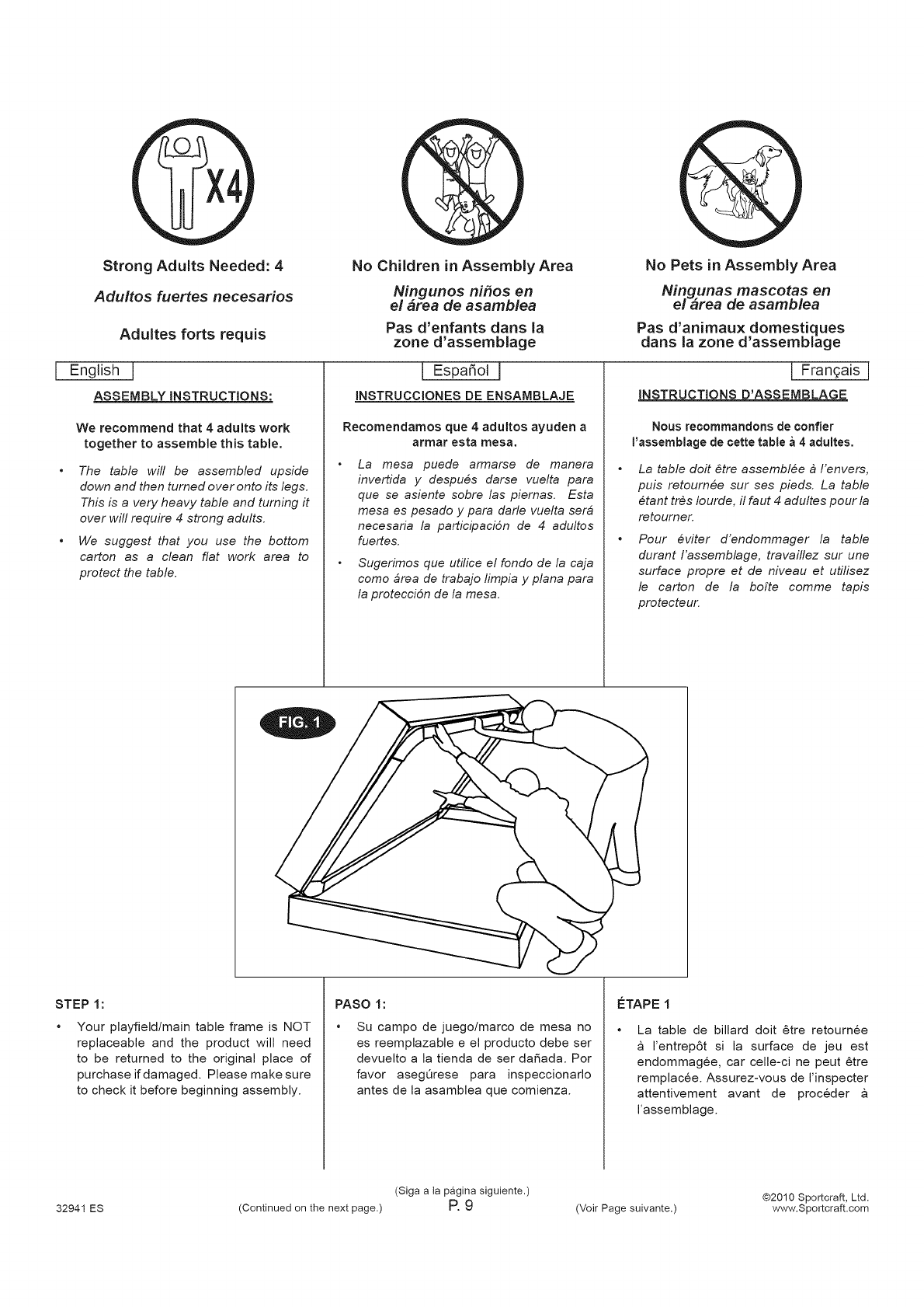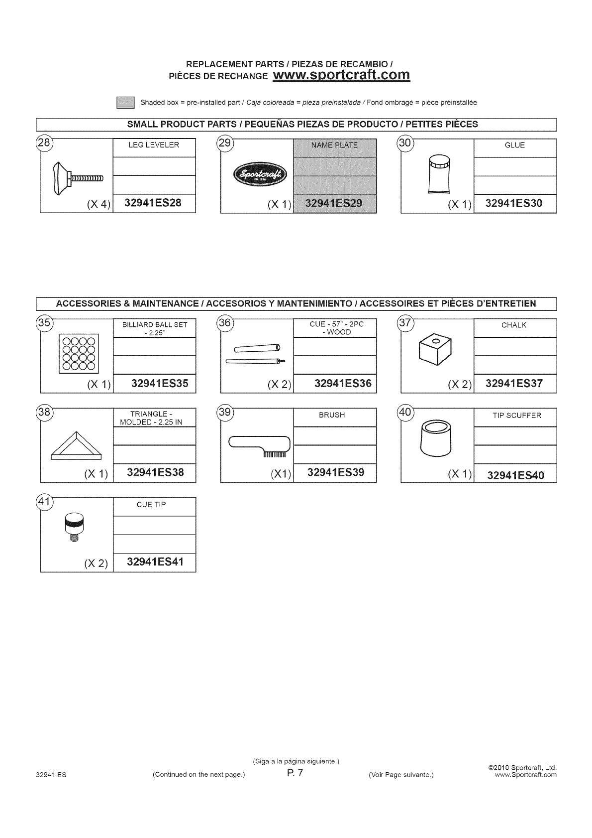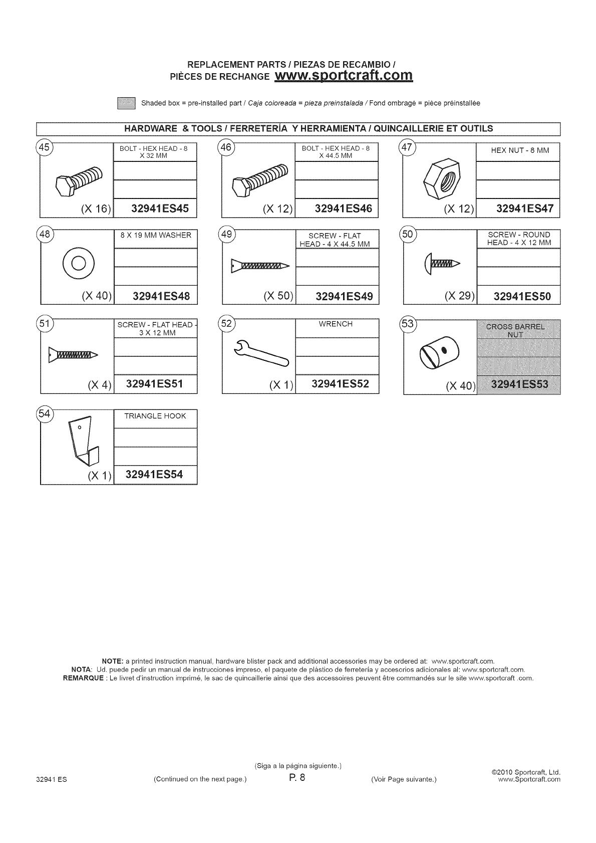 32941 ES (Continued on the next page.) P. 1 (Voir Page suivante.) www.Sportcraft.com
