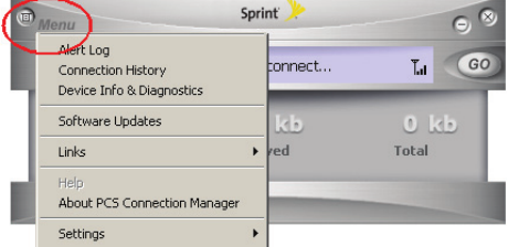 The Sprint PCS Connection Manager Software Window . . . . . 30