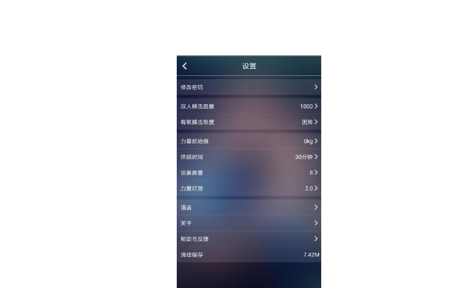 Setting: the user can set the strength of tainning according to their own situation, the
