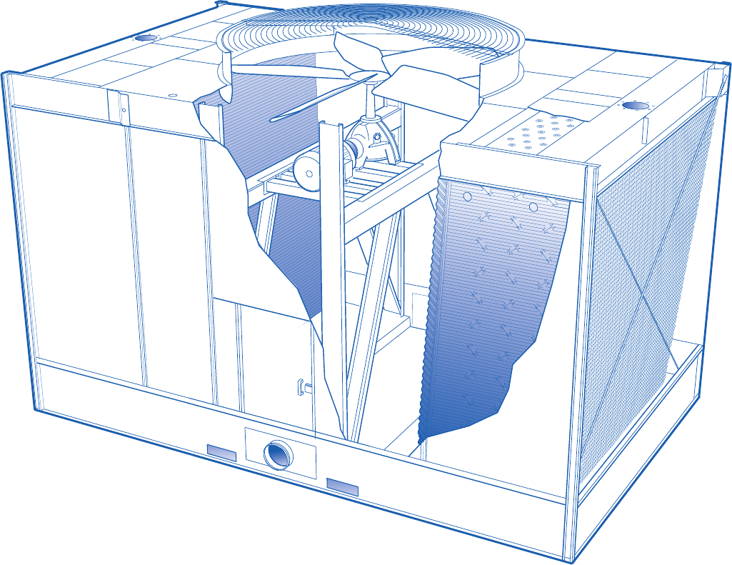 internal structure, drift eliminators and mechanical equipment in the plenum area.