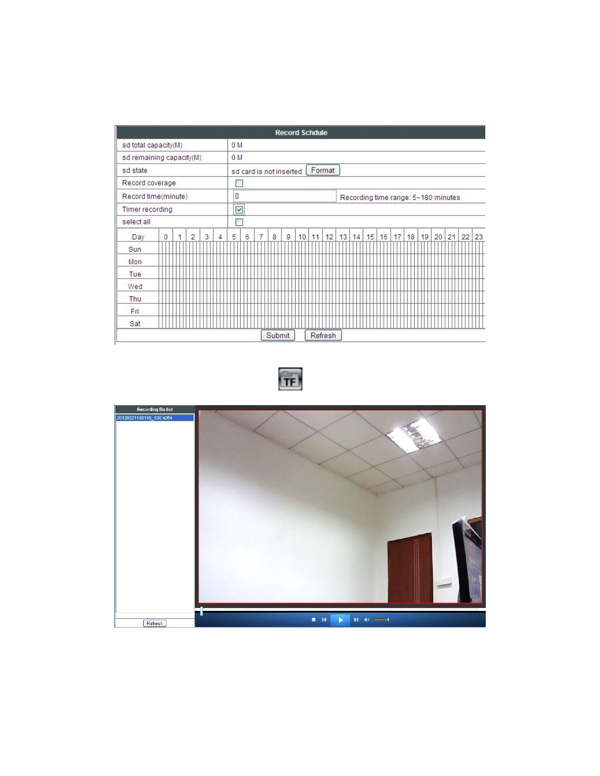 This sector is for SD card recording settings. When the SD card has been inserted, it will