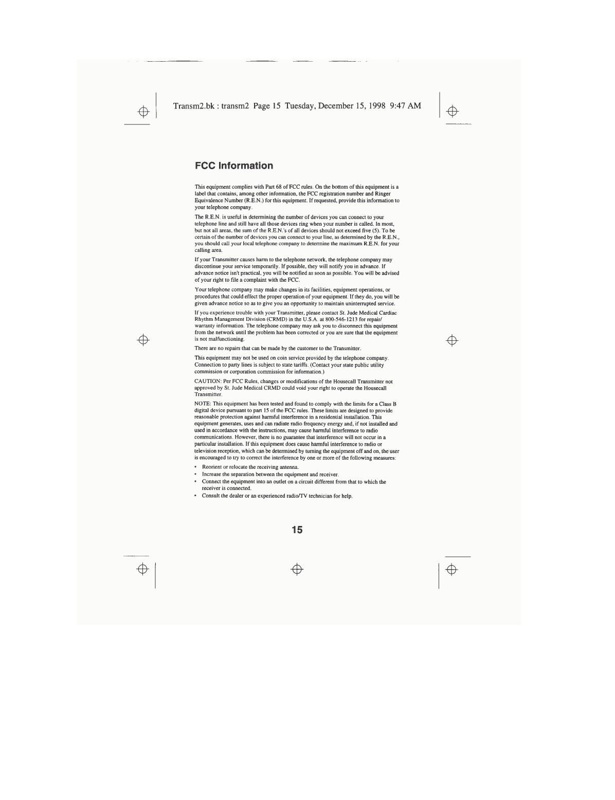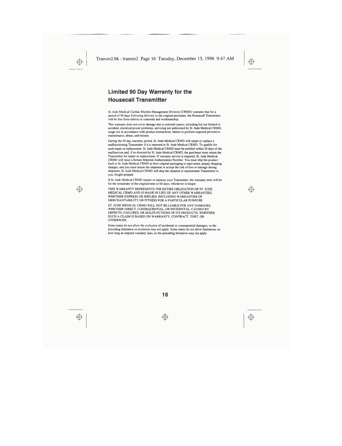 St. Jude Medical CRMD Defibrillator Interrogator and Transtelephonic follow-up system transmitter manual