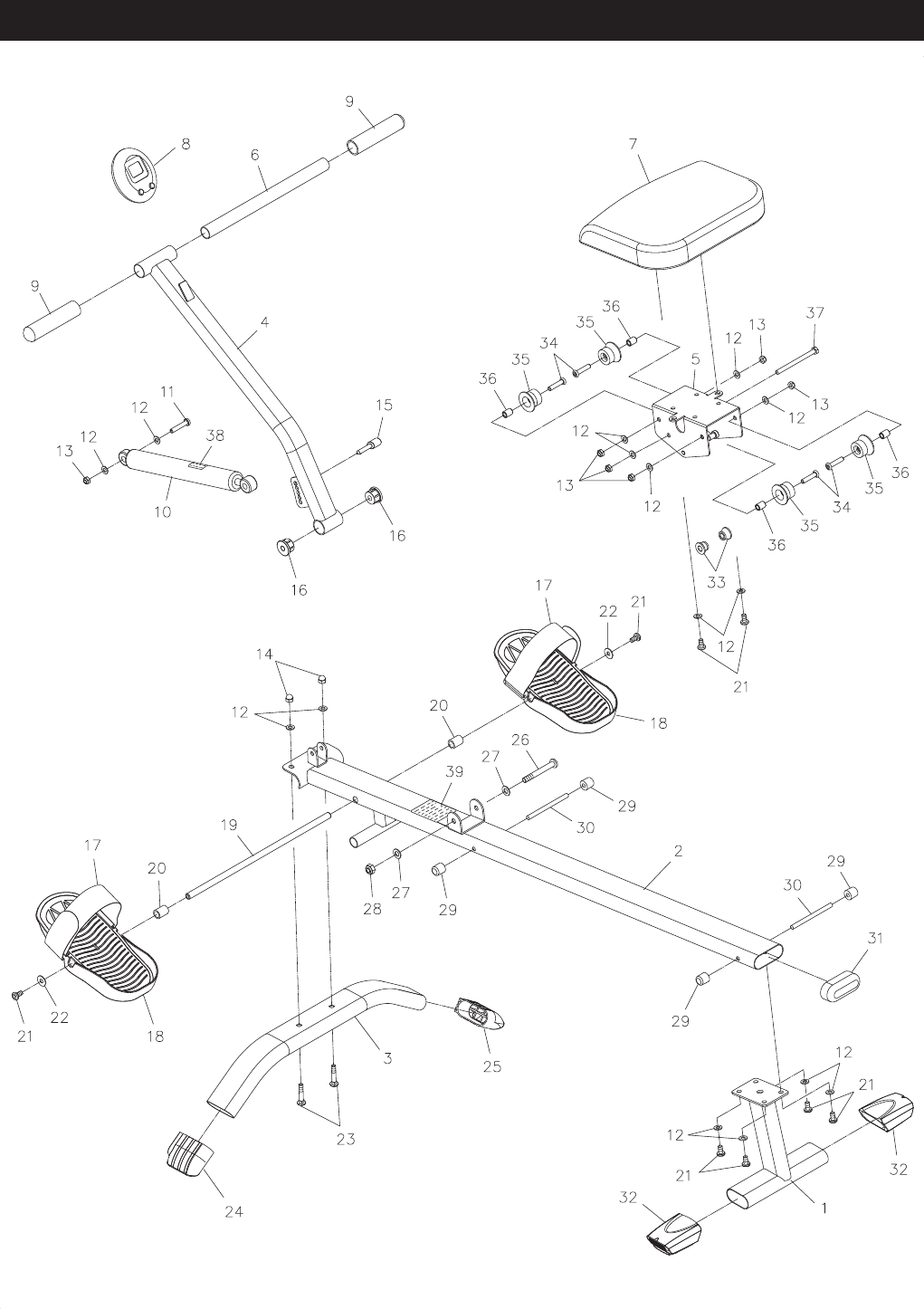 16. Do not use the seat to move the InMotion® Rower. The Seat will move and the SEAT CARRIAGE (5)