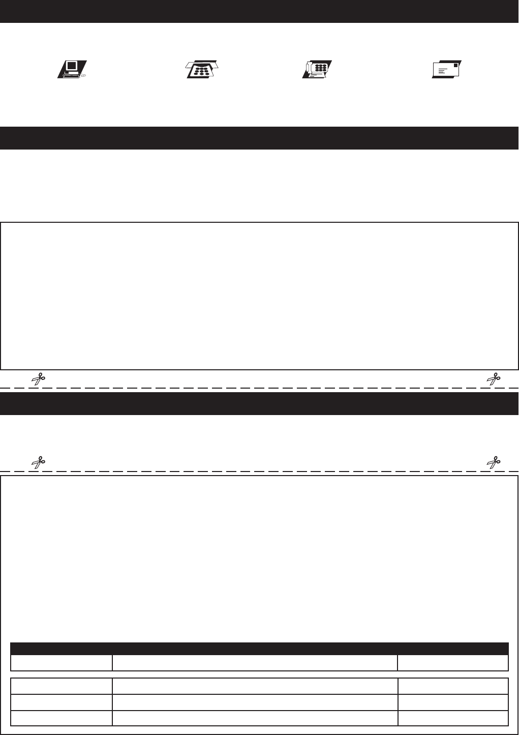 please contact customer service. Do not return the product. To order parts by mail, fill out the sheet below and fax it to