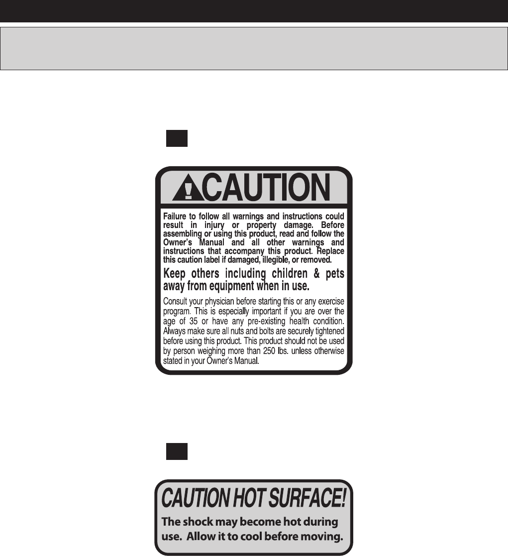 10. Shocks on steppers/rowers get HOT during use. To avoid burns, do not touch the shocks until they