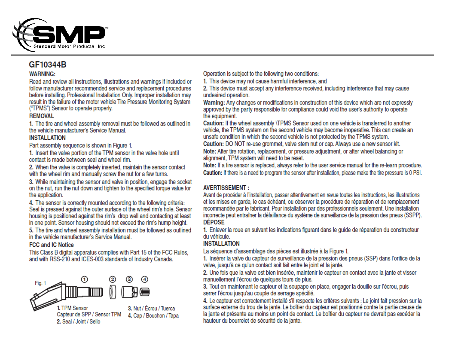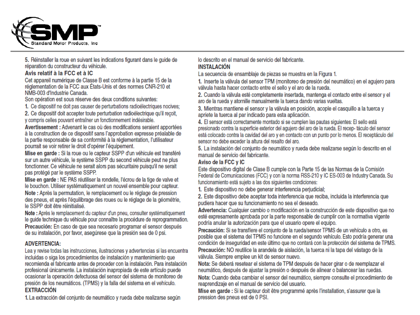 Standard Motor Products, Inc. TPMS Users Manual