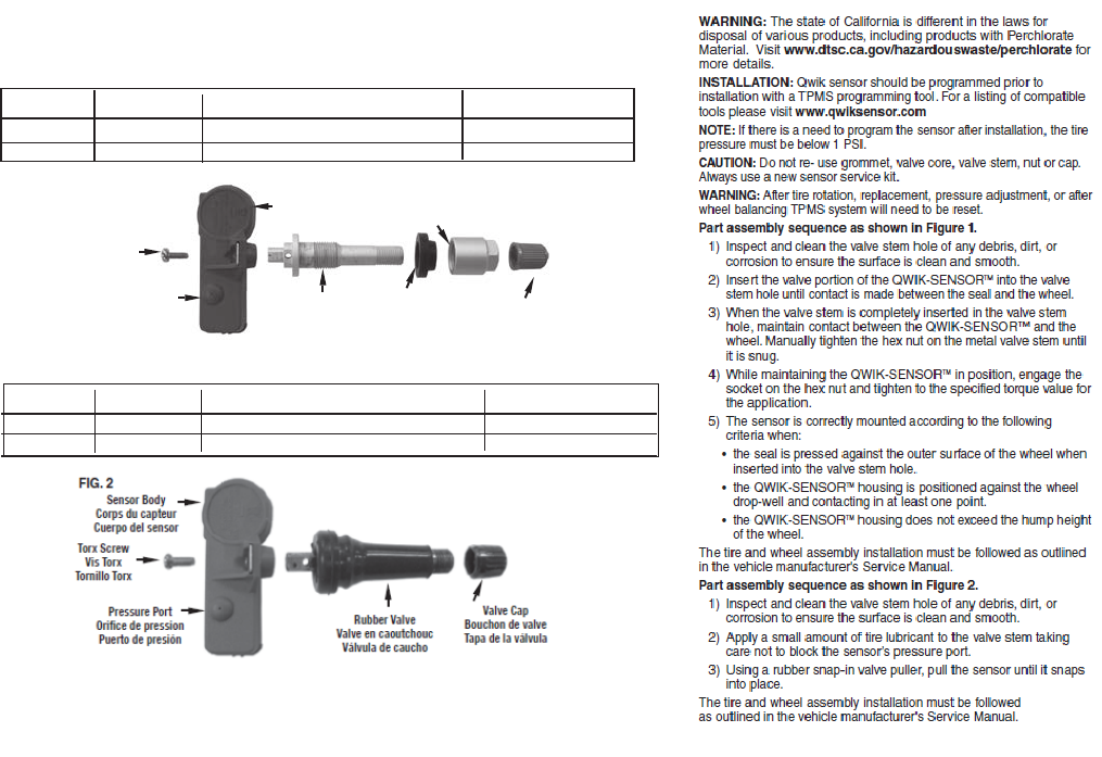 installation with a TPMS programming tool. For a listing of compatible