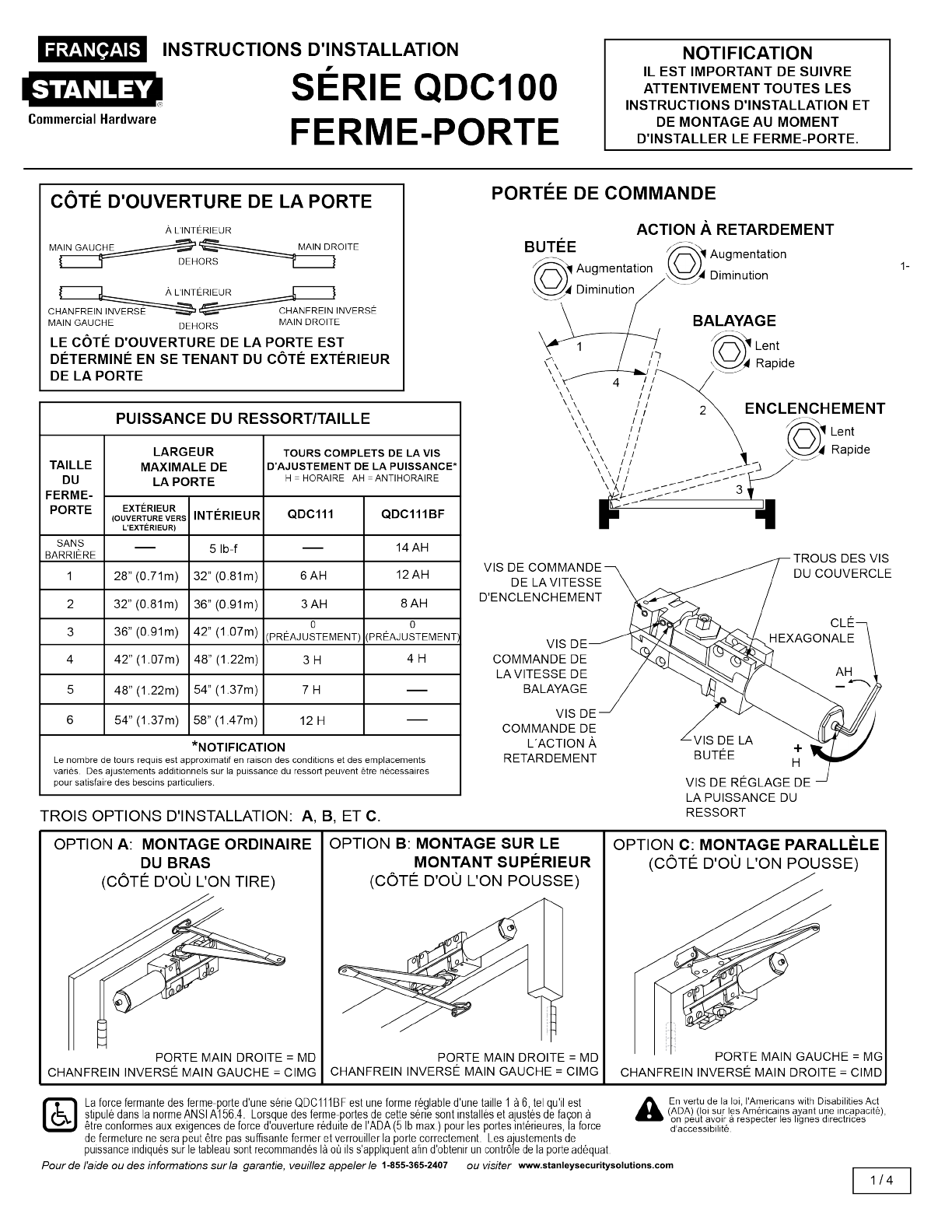 User Manual: Stanley Security QDC100 Series Door Closer Installation Instructions Installation