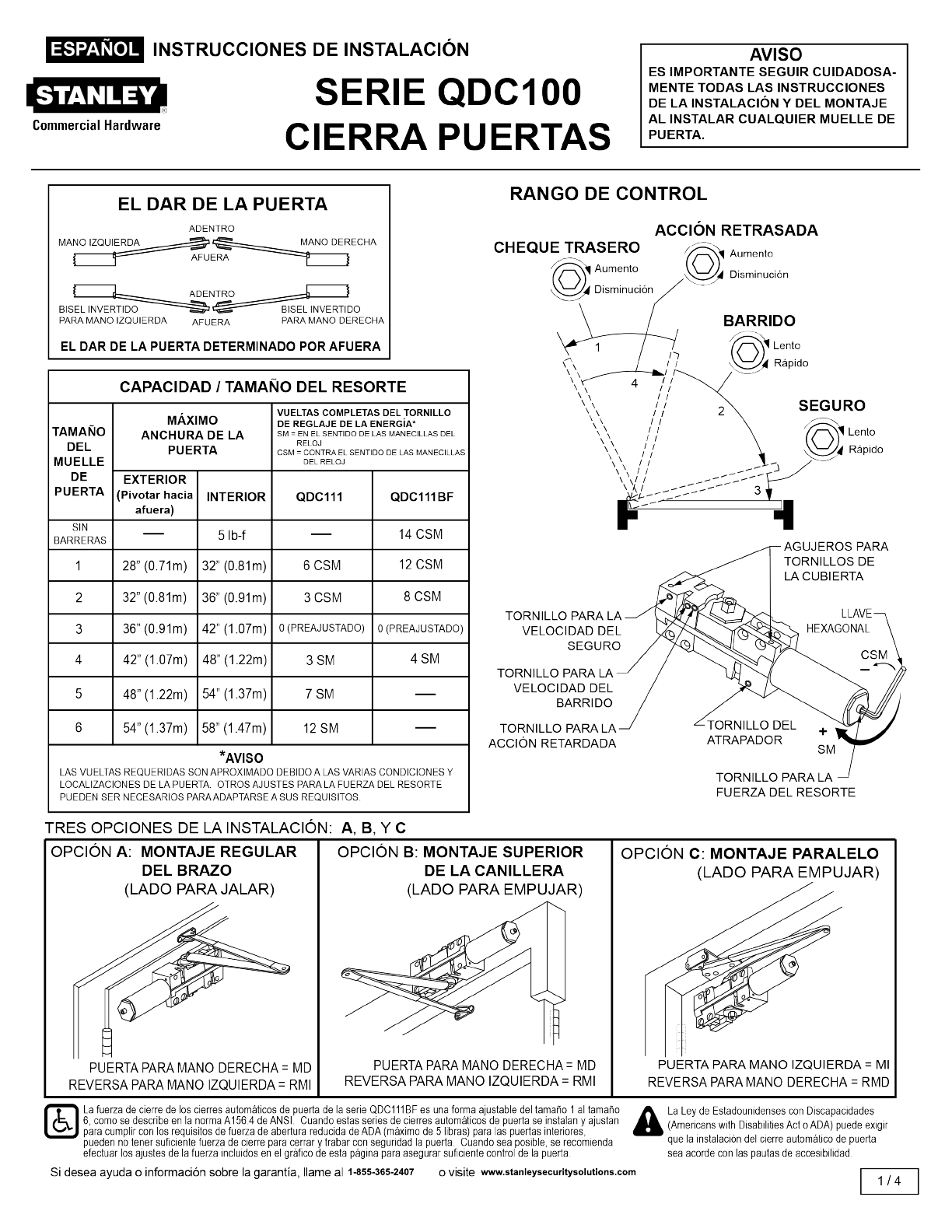 Stanley Security QDC100 Series Door Closer Installation Instructions 5043520 04 QDC100Installation