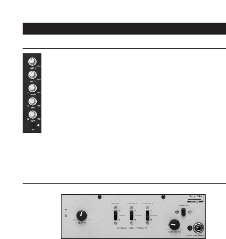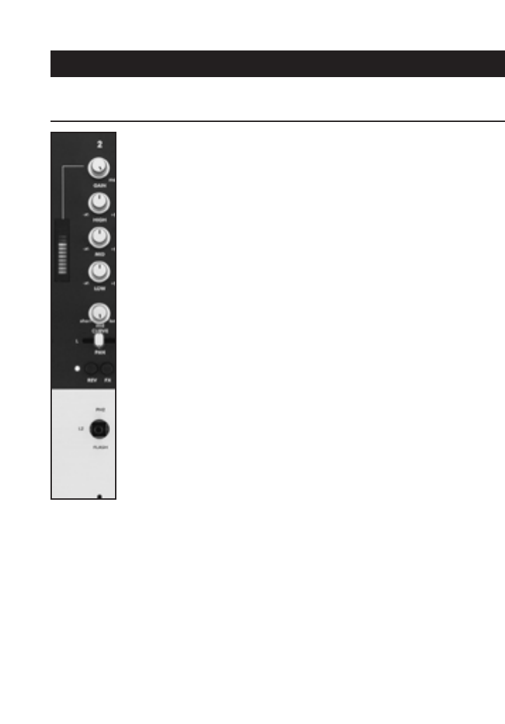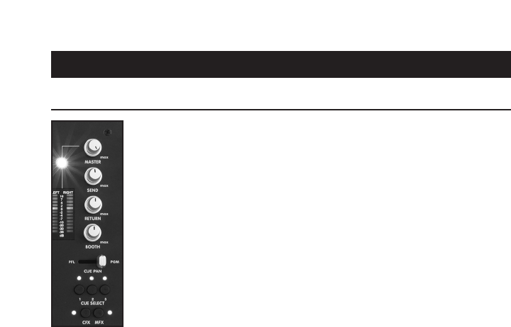 • Pre Fader Listen (PFL) of channels and effects loop with Cue Pan control