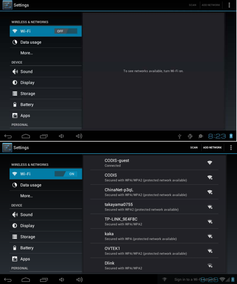 CPU model Allwinner A13 Cortex A8 + GPU 400MHz