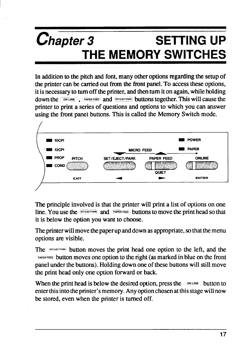 - Chapter 3 SETTING UP THE MEMORY SWITCHES