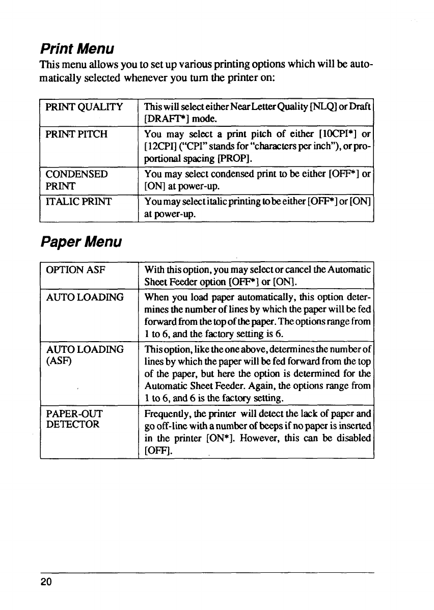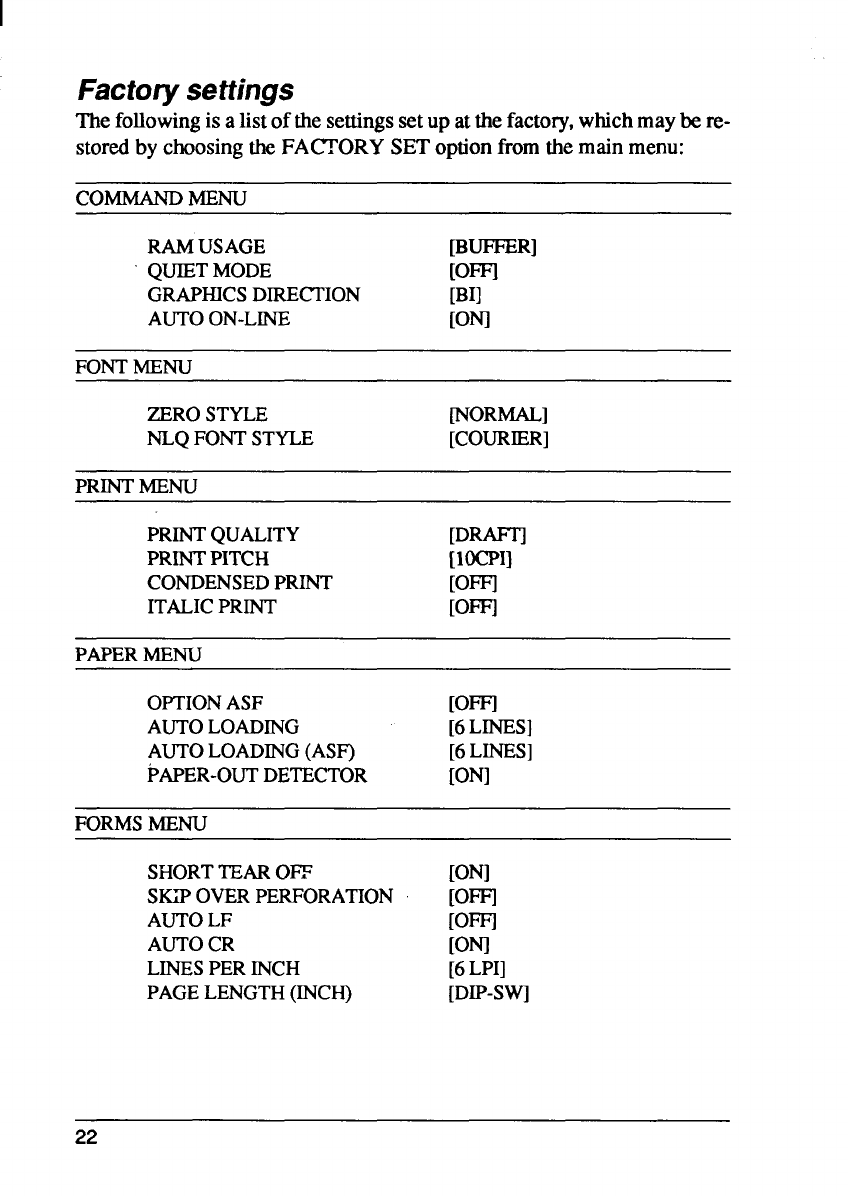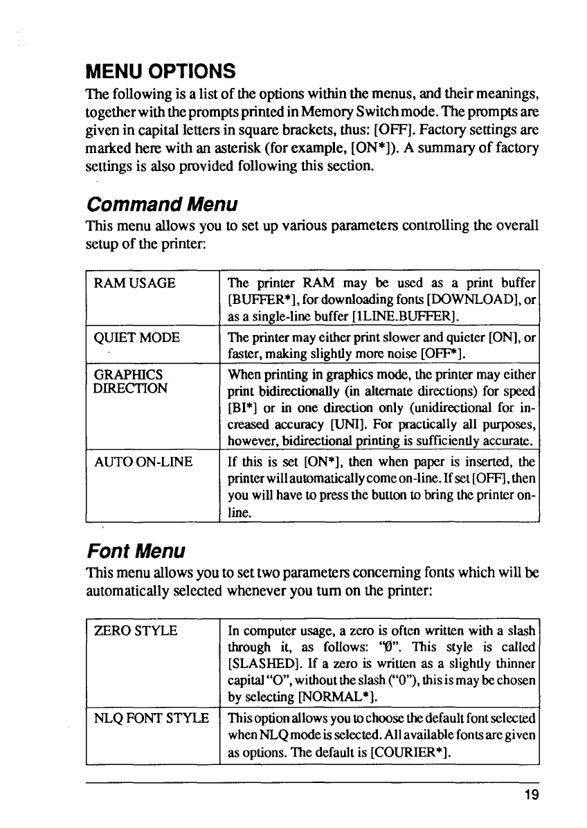 functionsrelatedto paperhandling,printmodesand font selection.This