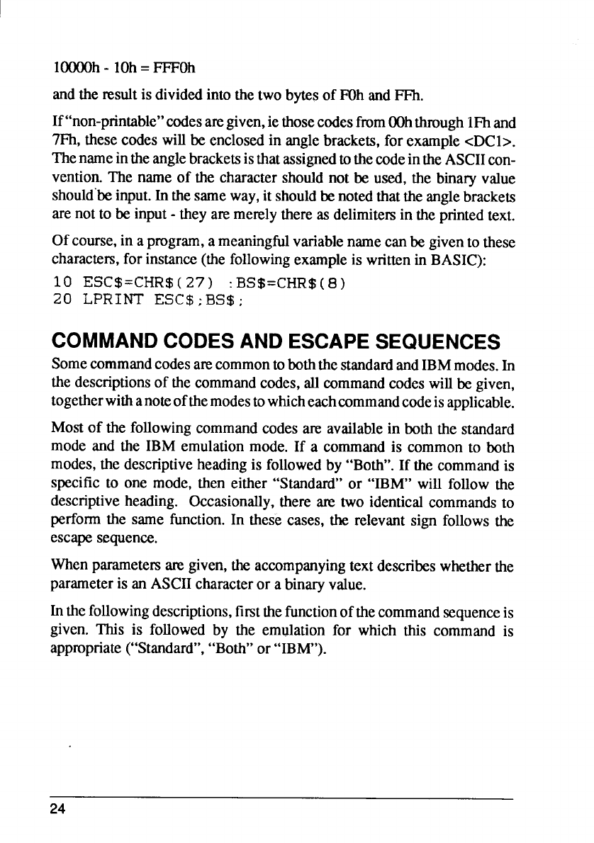 - COMMAND CODES AND ESCAPE SEQUENCES