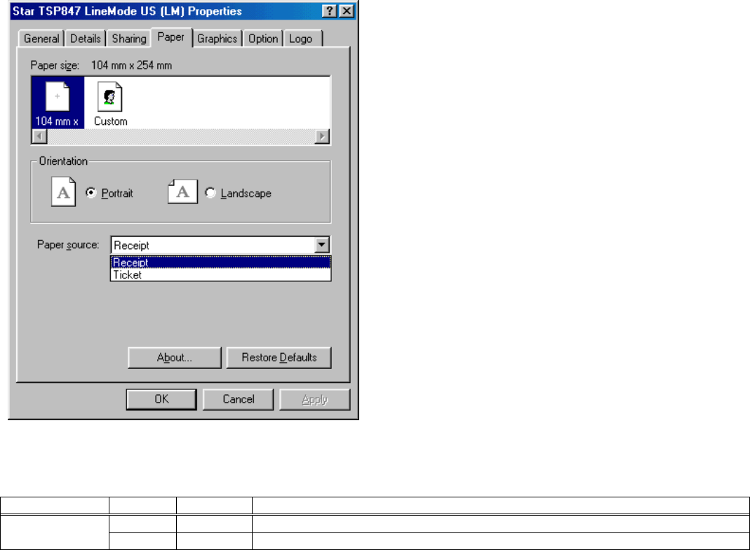 LineMode, tells you that this is a driver based on Star’s LineMode command set. The middle section, 95-98-