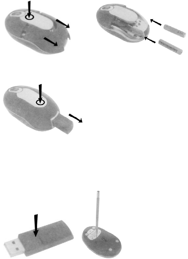 2) Push the lower half of the button in centre of the mouse( indicated below) to release