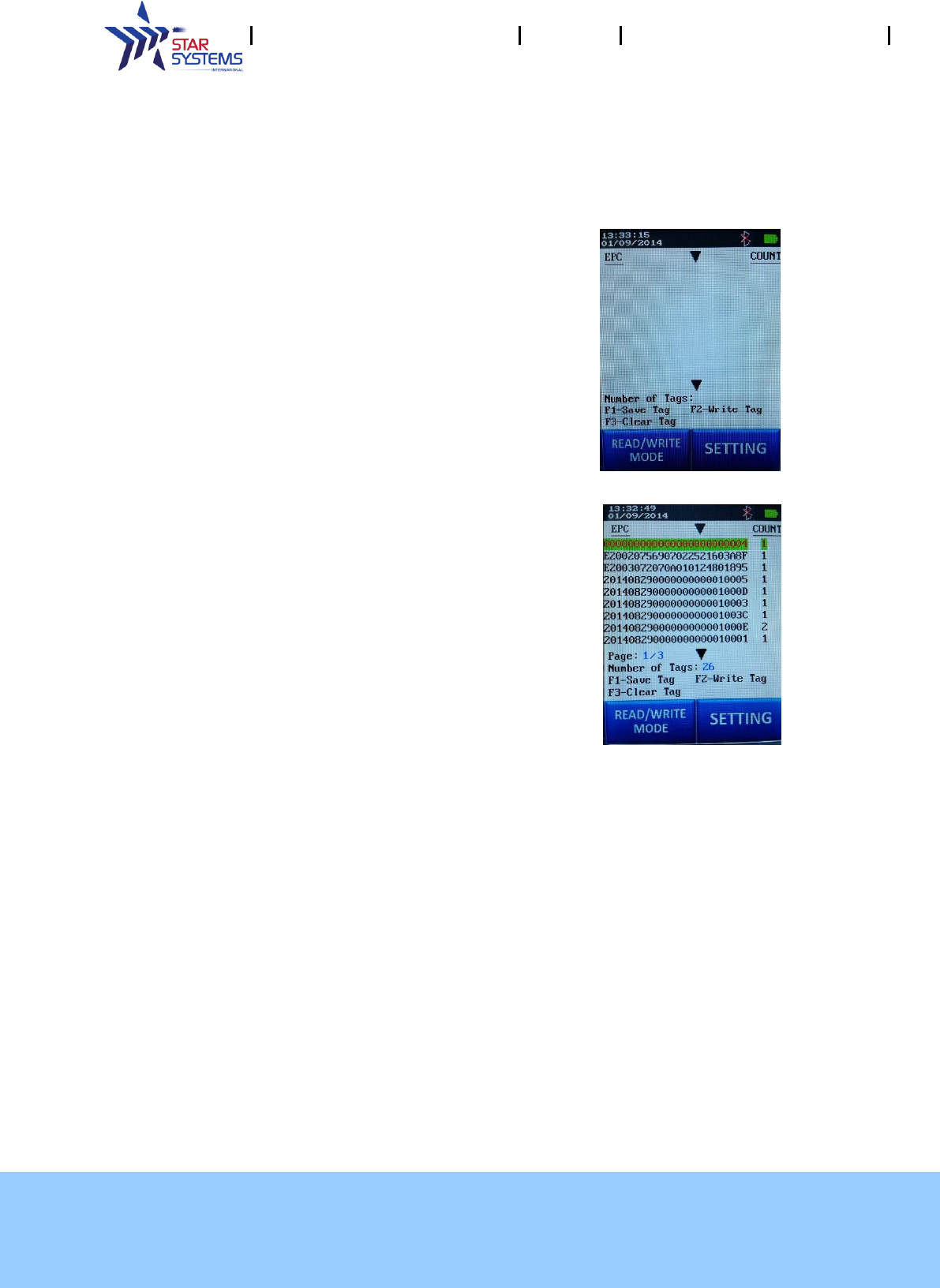 EPC to the reader memory with the function button. Up to 100 tags can be saved at a