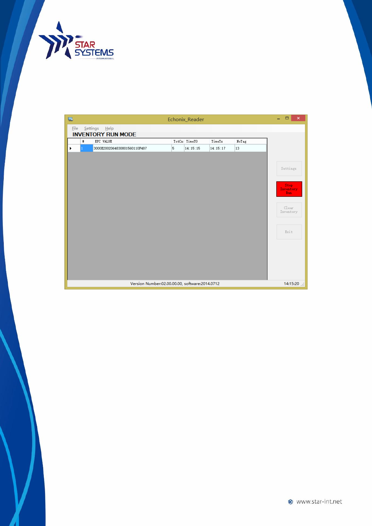 At the main page, click “Start Inventory” Button, information on tag being read will be displayed in