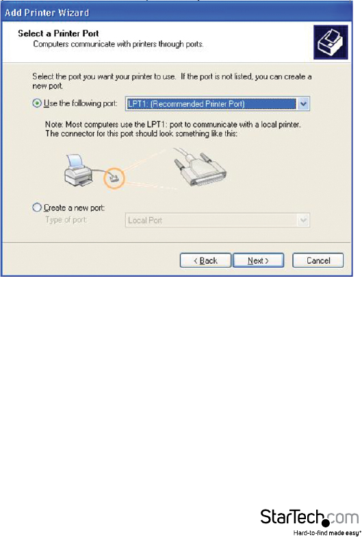 9. Make sure the Use the following port radio-button is clicked and select LPT1: