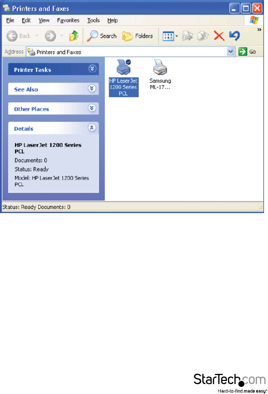 14. Click Start -> Printers and Faxes and highlight your newly installed printer.