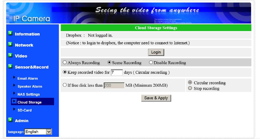 The camera could also do recording on Micro-SD card and NAS devices.