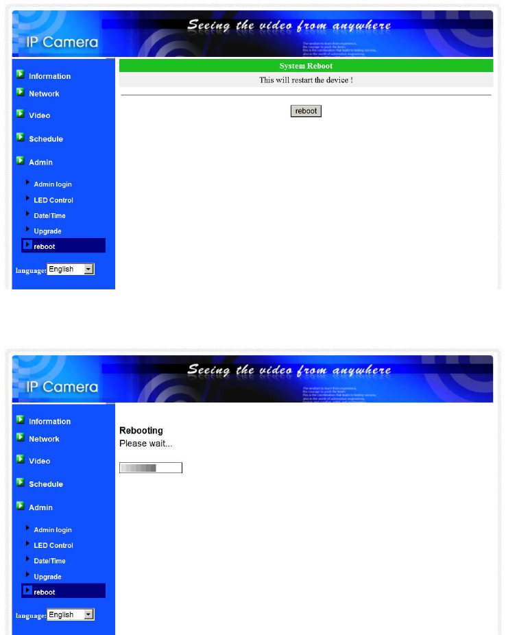 seconds and release it. The IP Cam will then restart to the factory default. The