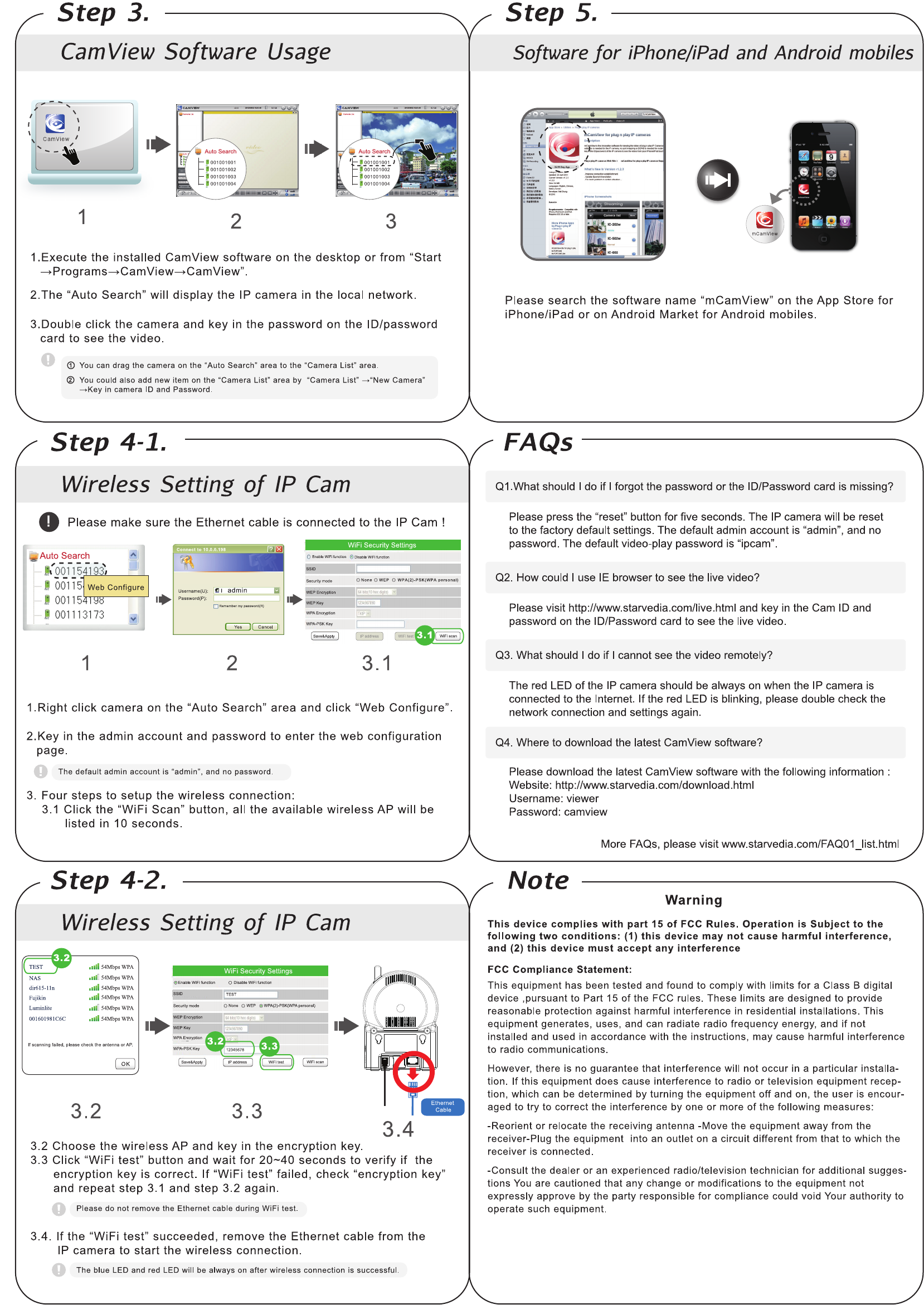 StarVedia Technology Inc Pan/Tilt Mega-pixel IP Cam 4 161200089 QIG IC737wp SV EN v2 0