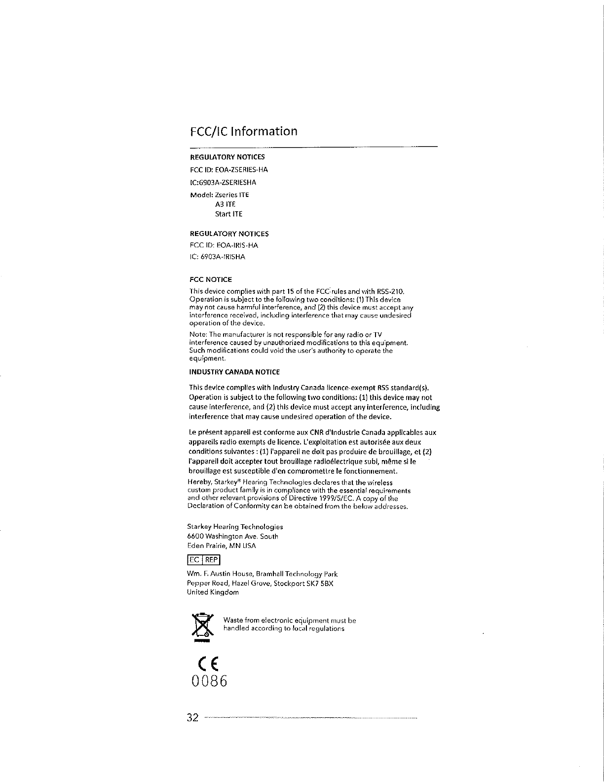 Starkey Laboratories ZSERIES-HA Hearing Aid User Manual