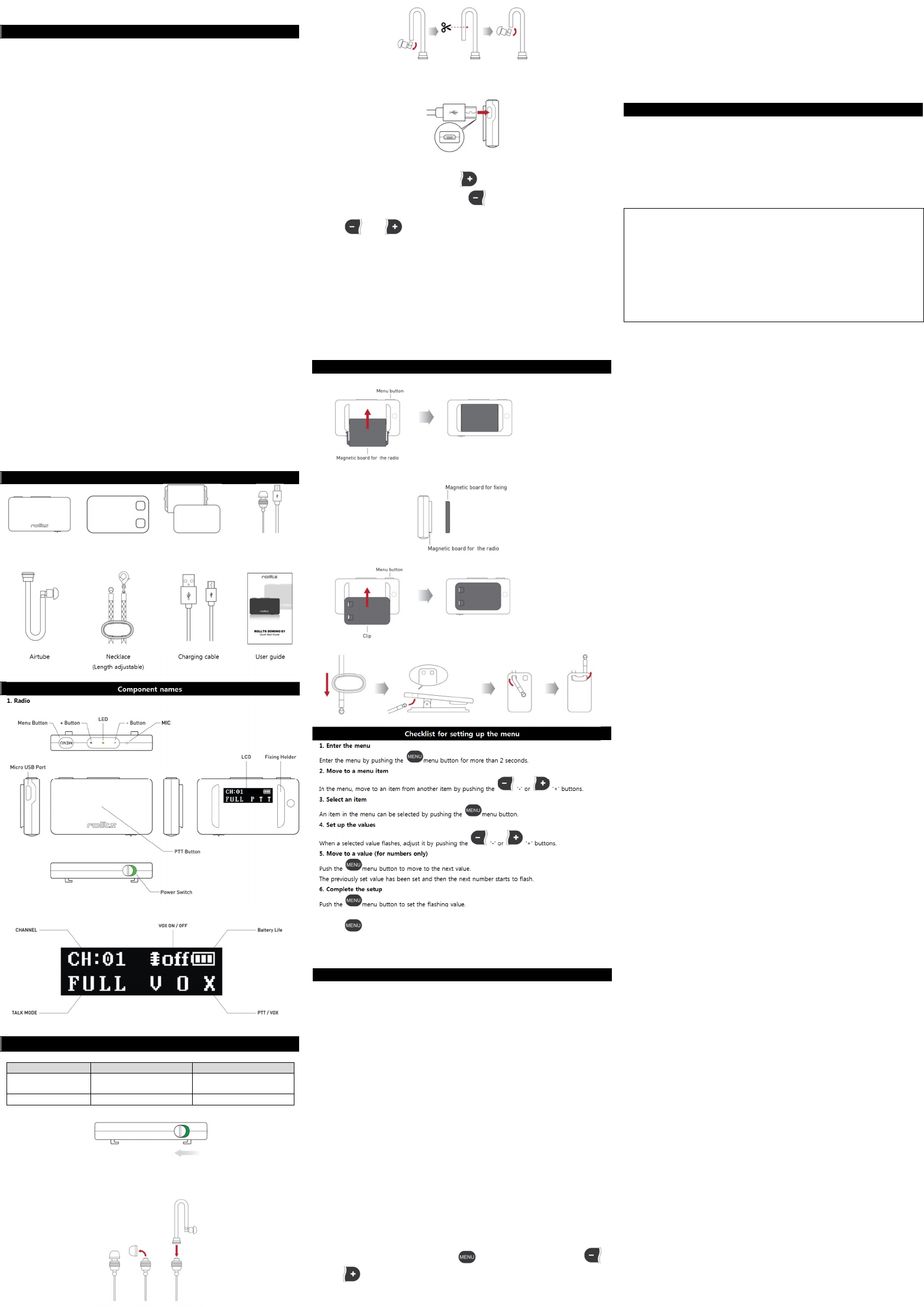 The radio can be fixated to your clothes by locating those two magnetic boards for the radio and fixing