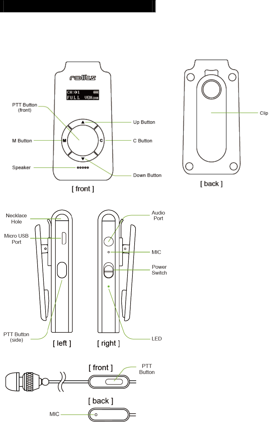 8. SIDE TONE: With the ‘SIDE TONE’ on, a voice message can be heard through the earset, making it
