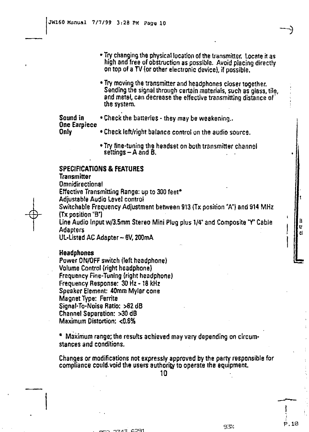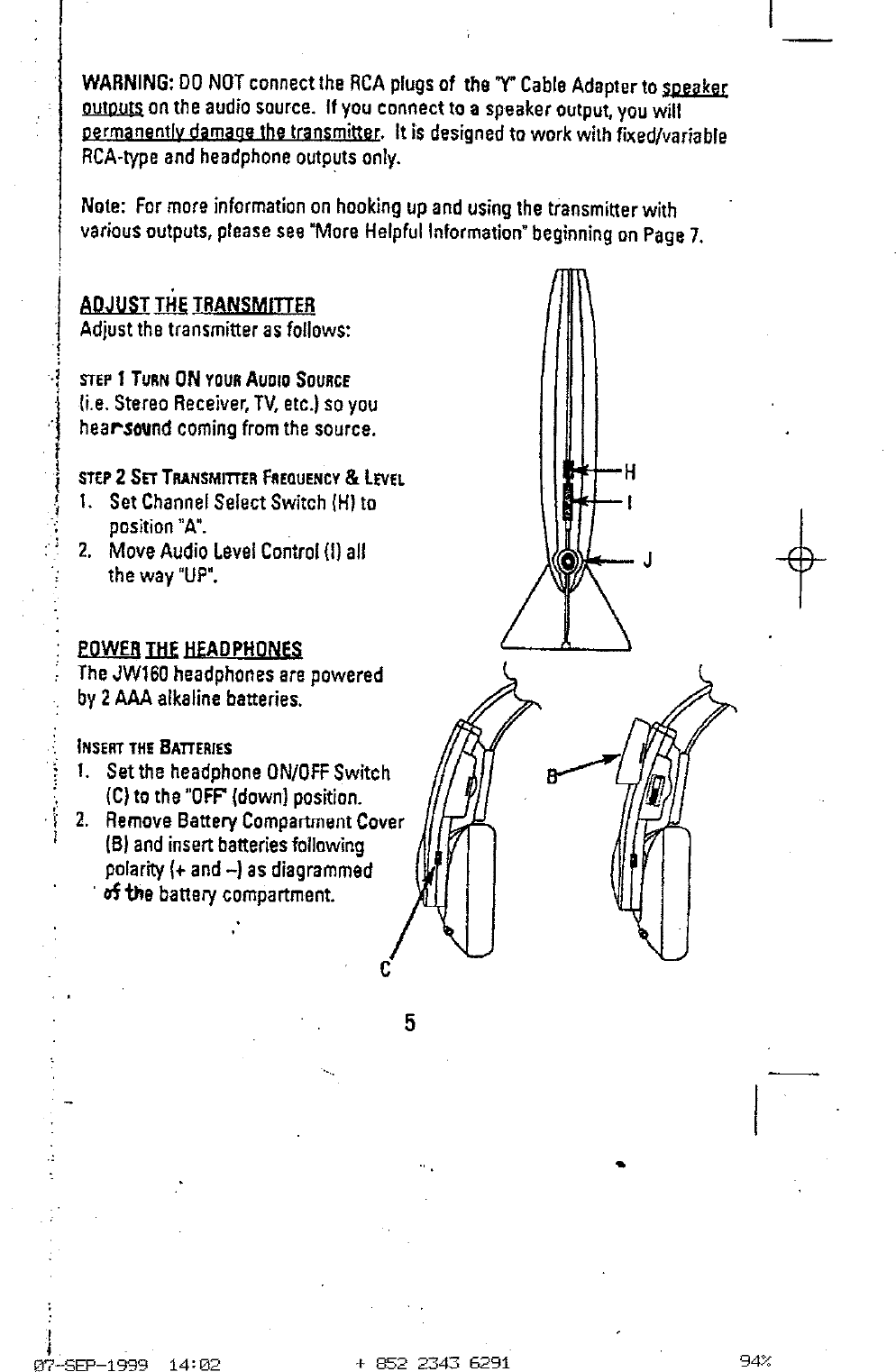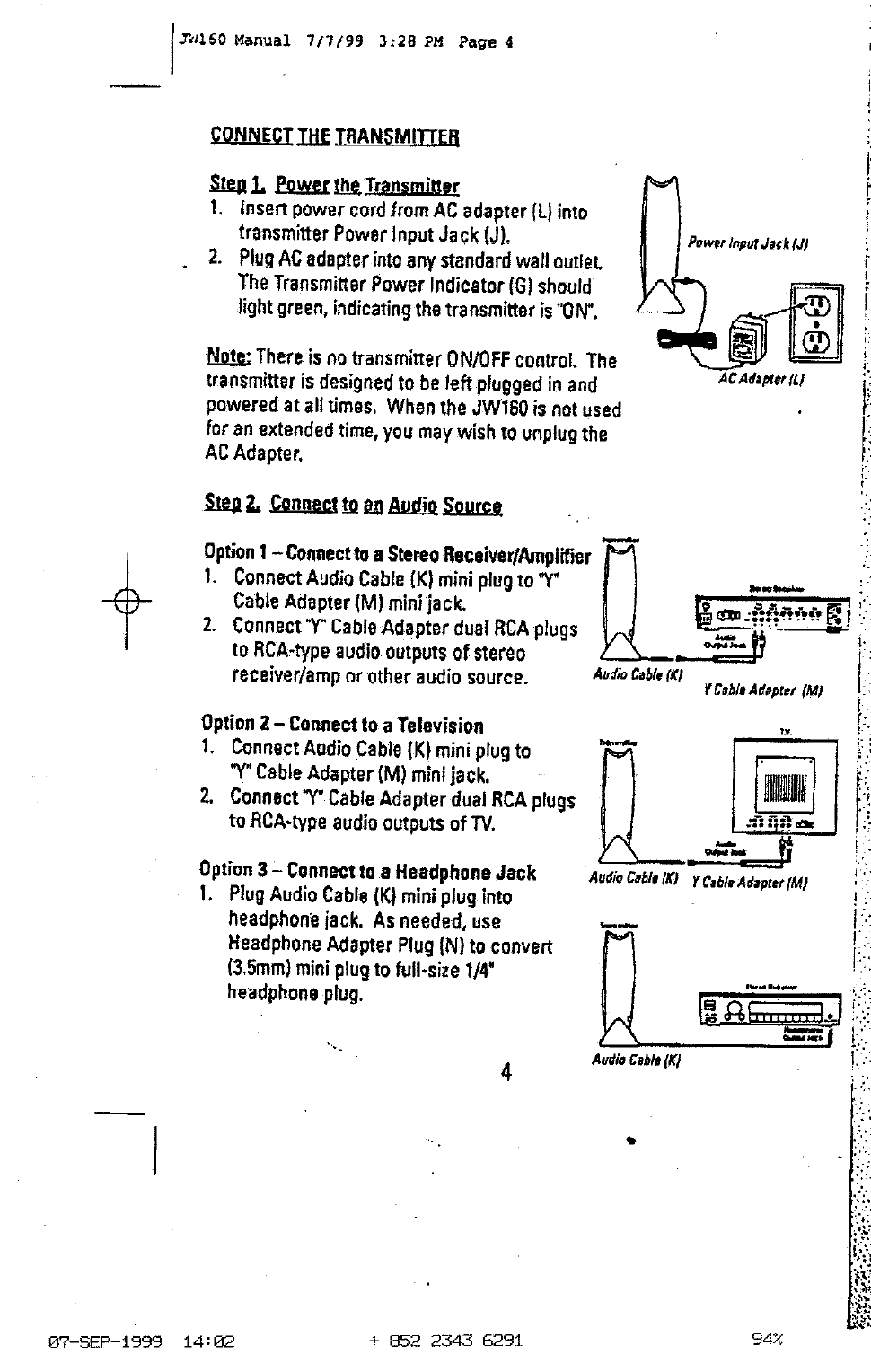Std JW-160T Wireless Stereo Headphone (Transmitter) User Manual