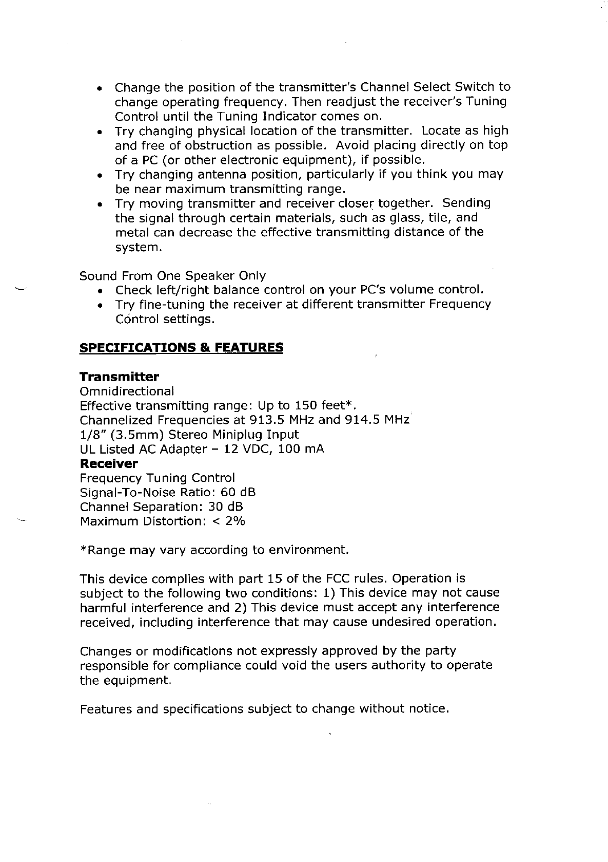 Std JW-250T 900 MHz Wireless Transmitter User Manual