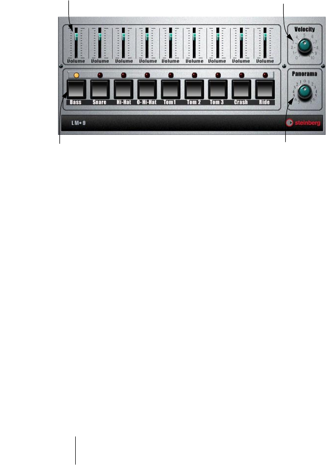 Volume fader (one for each drum sound).