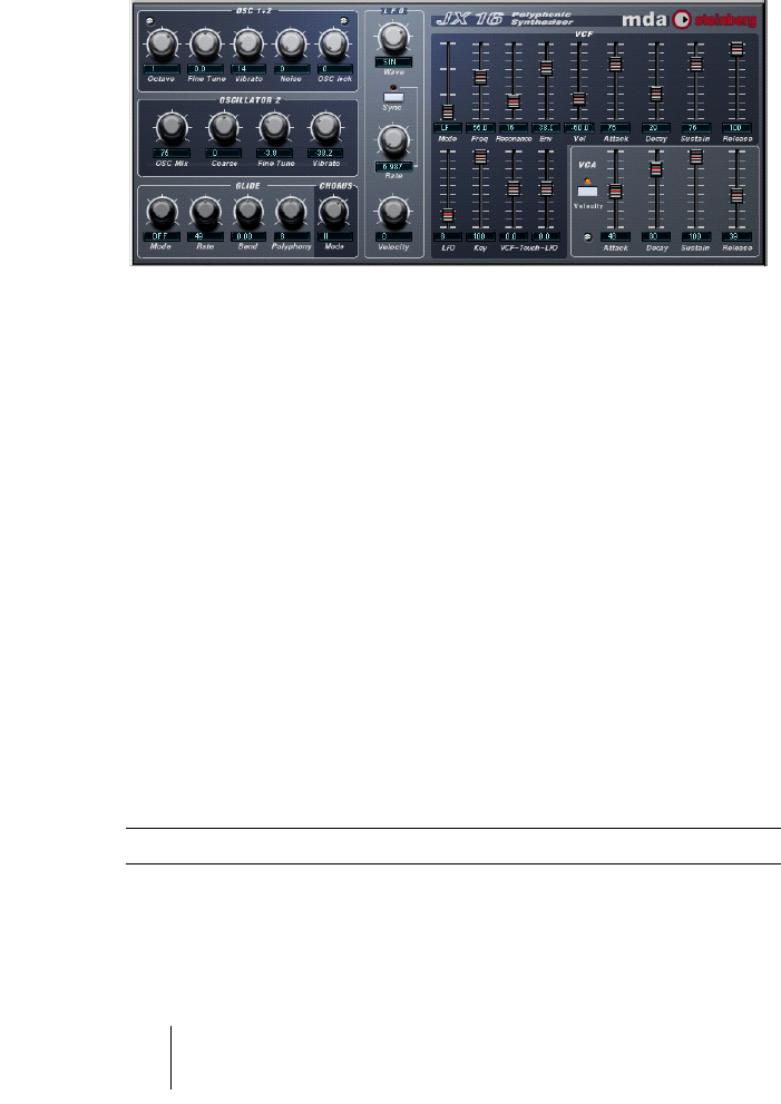 The JX16 is a dual oscillator software synthesizer with the following