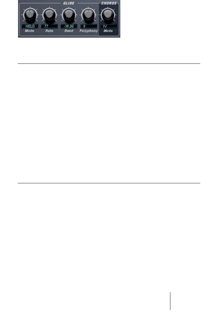 This section contains Glide parameters, and also the Polyphony and