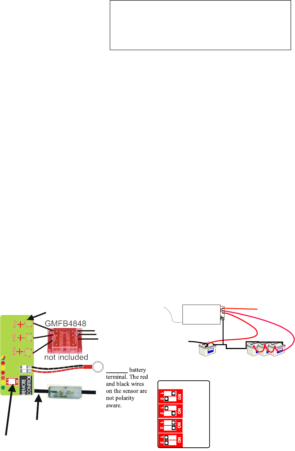 - Install as close to the batteries as possible, preferably within 2 meters of the batteries.
