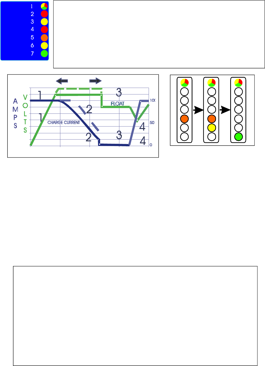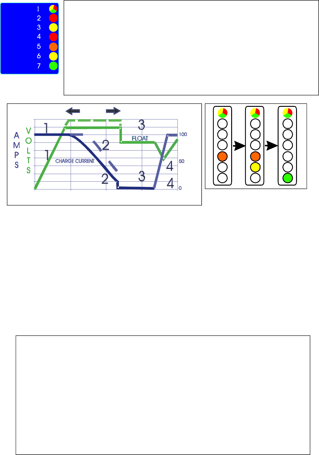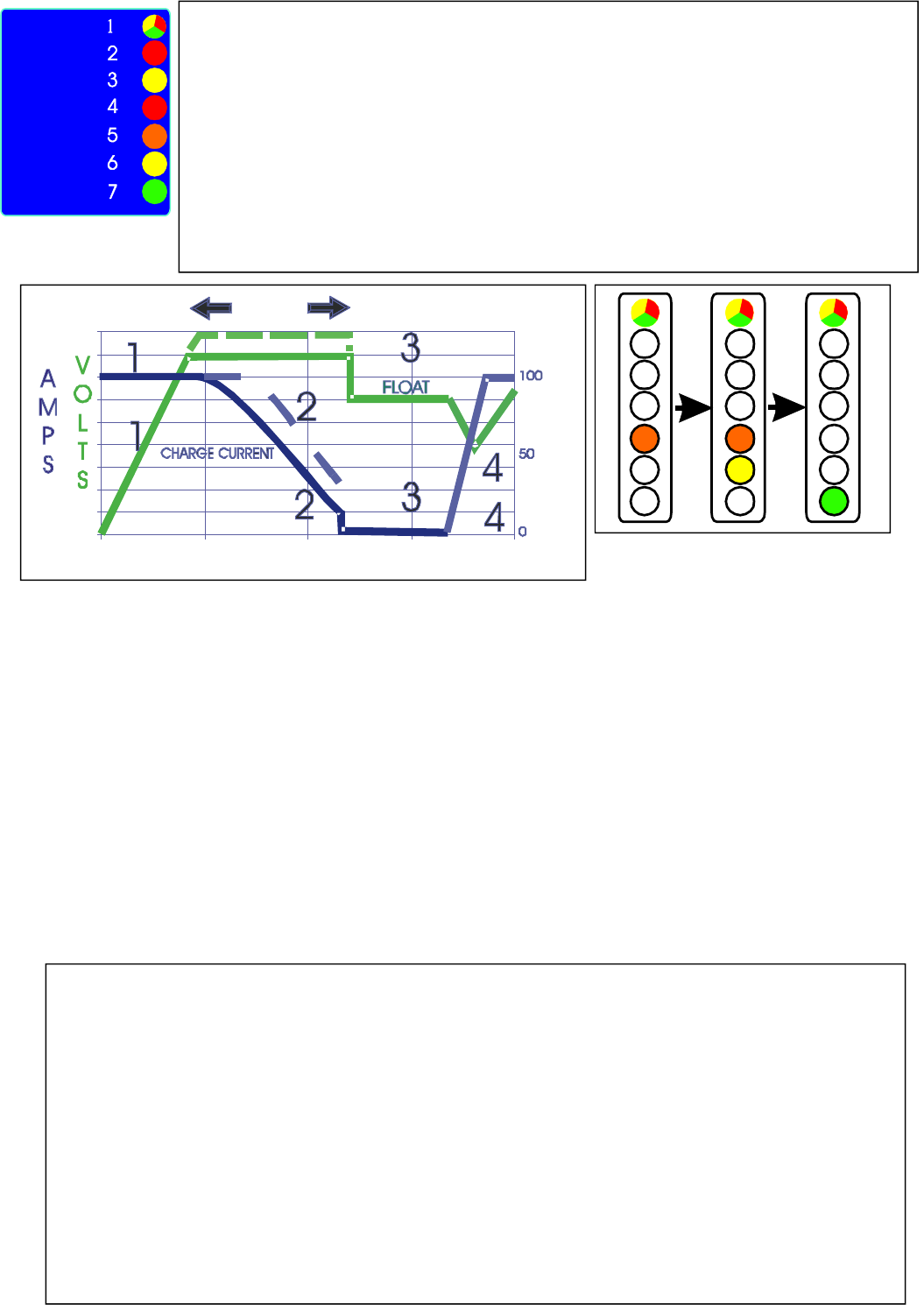 7 : Float /powerpack : The L.E.D. indicates that the charger is in step 3.