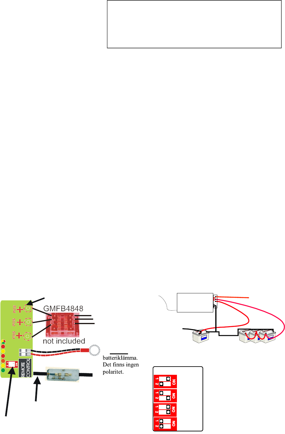 - Installeras så nära batterierna som möjligt, helst inom 2 meters omkrets.