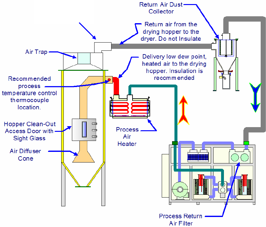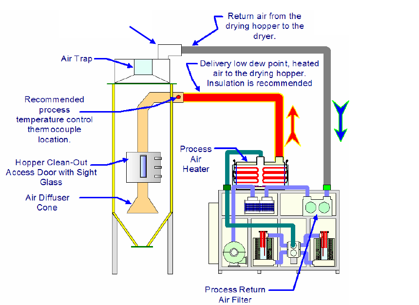 You should inspect the large dehumidifying dryer for possible shipping damage.