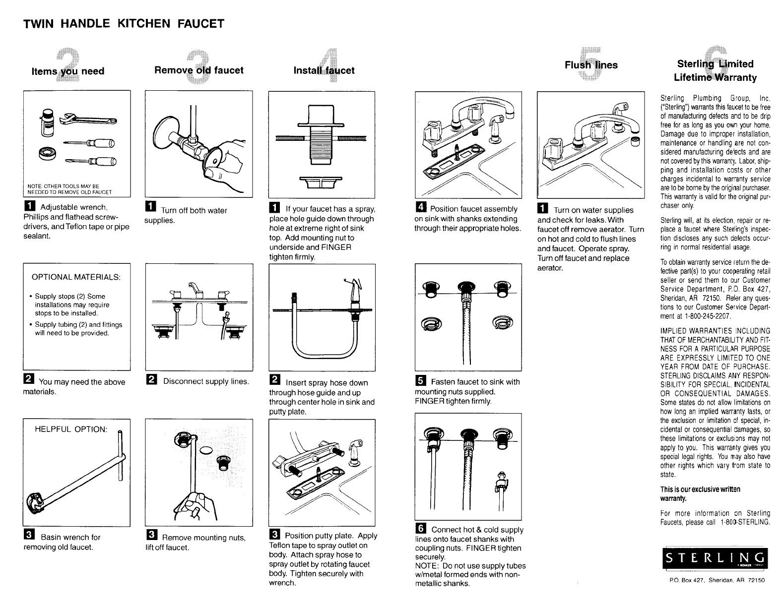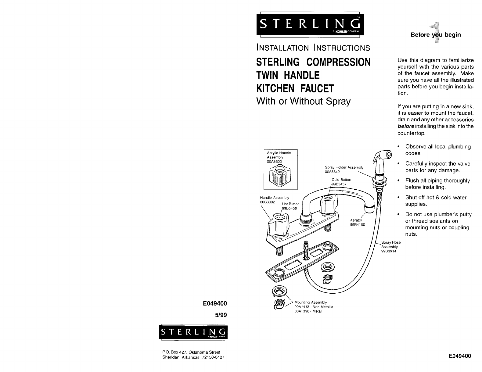 Sterling E049400 INSTALLATION INSTRUCTIONS FAUCET FI26110/26110P/26130/26130P/26830/26810 SERIES 261/268, COMPRESSION TWIN HANDLE KITCHEN User Manual To The Dcb2b0f2 C8f0 4184 A008 74fb26d643cd